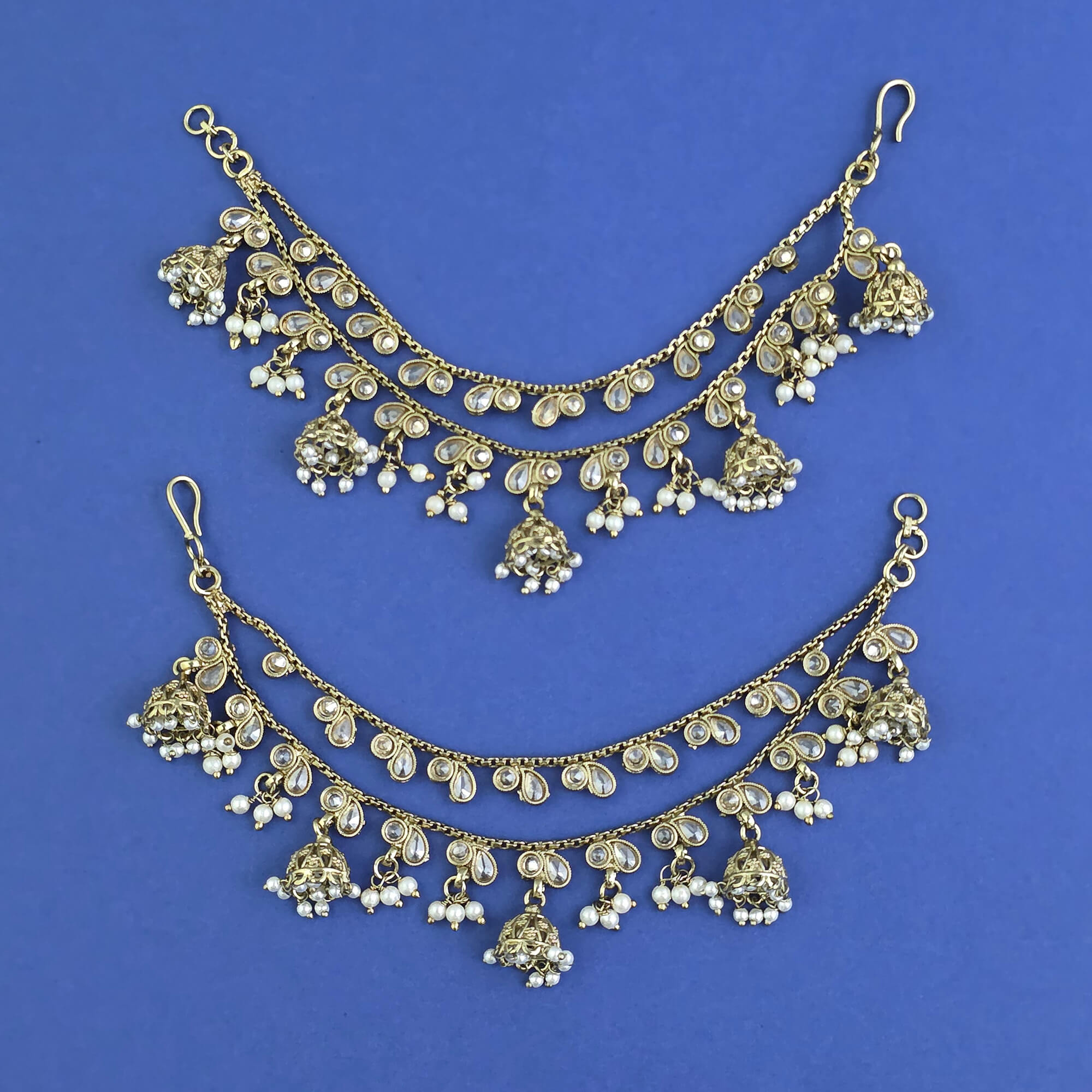 232381 Antique Moti Ear Chain with Mehndi PlatingNew