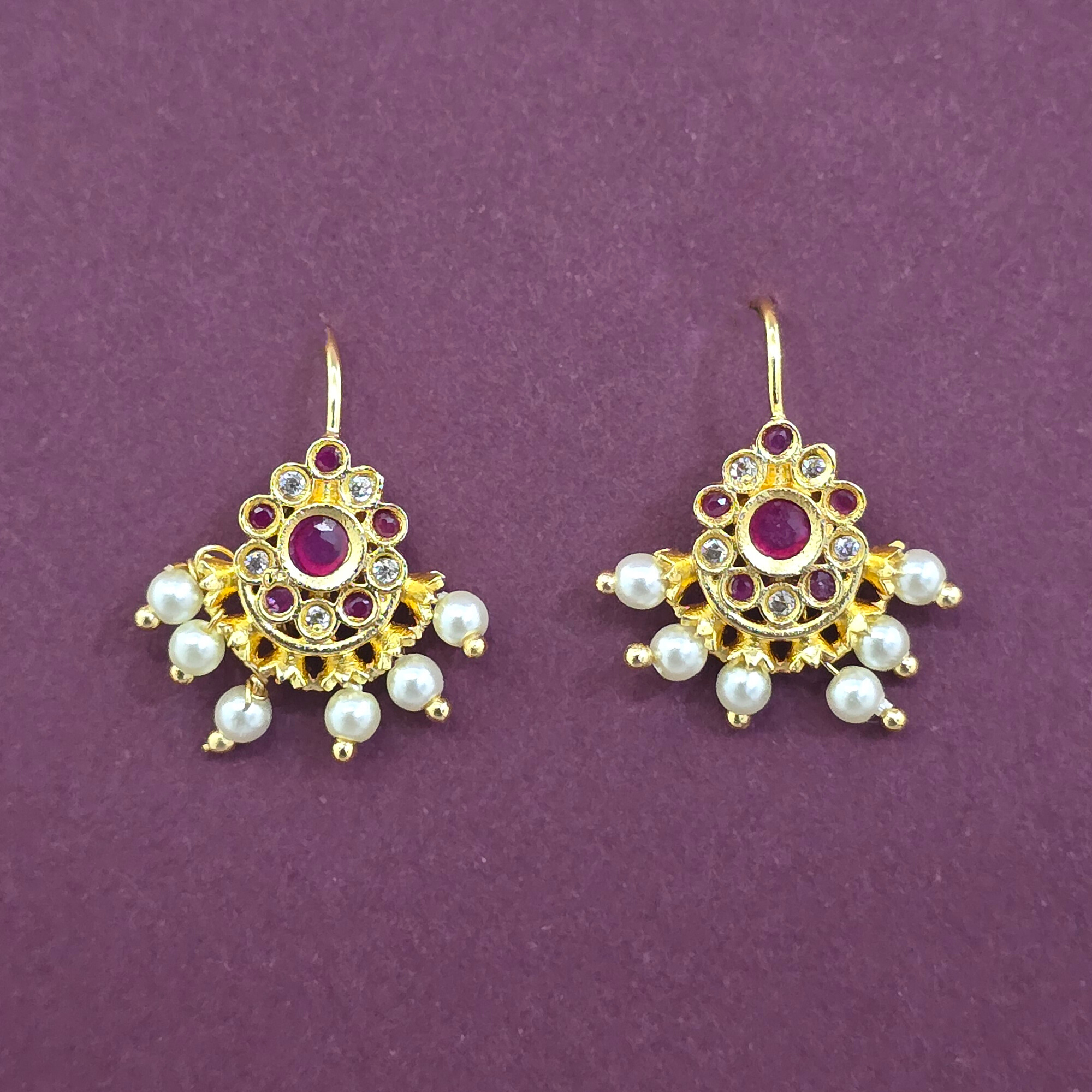 Home / Antique Earring / antique moti earring with matte gold plating
