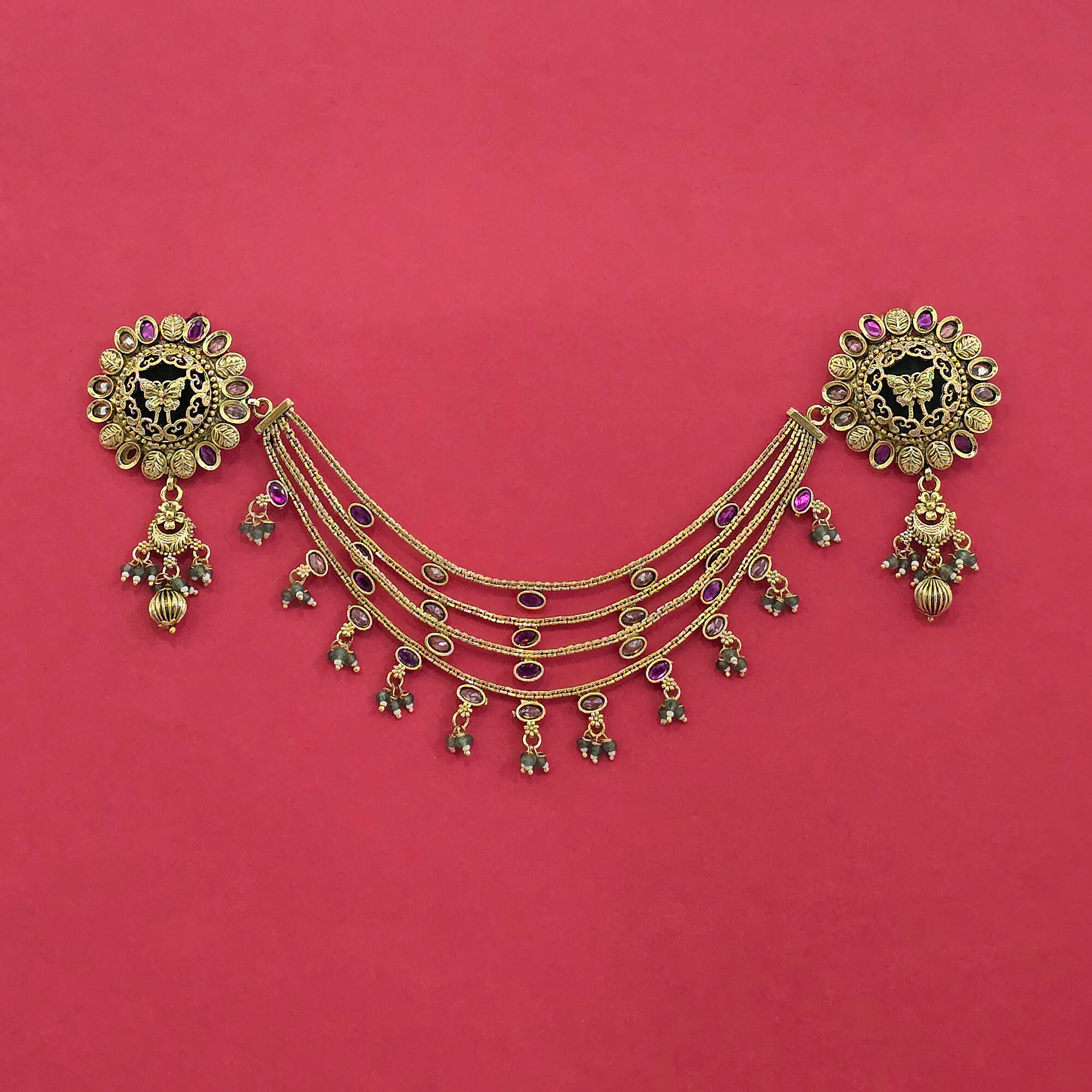 Home / Antique Hair Brooch / antique moti hair brooch with matte gold plating