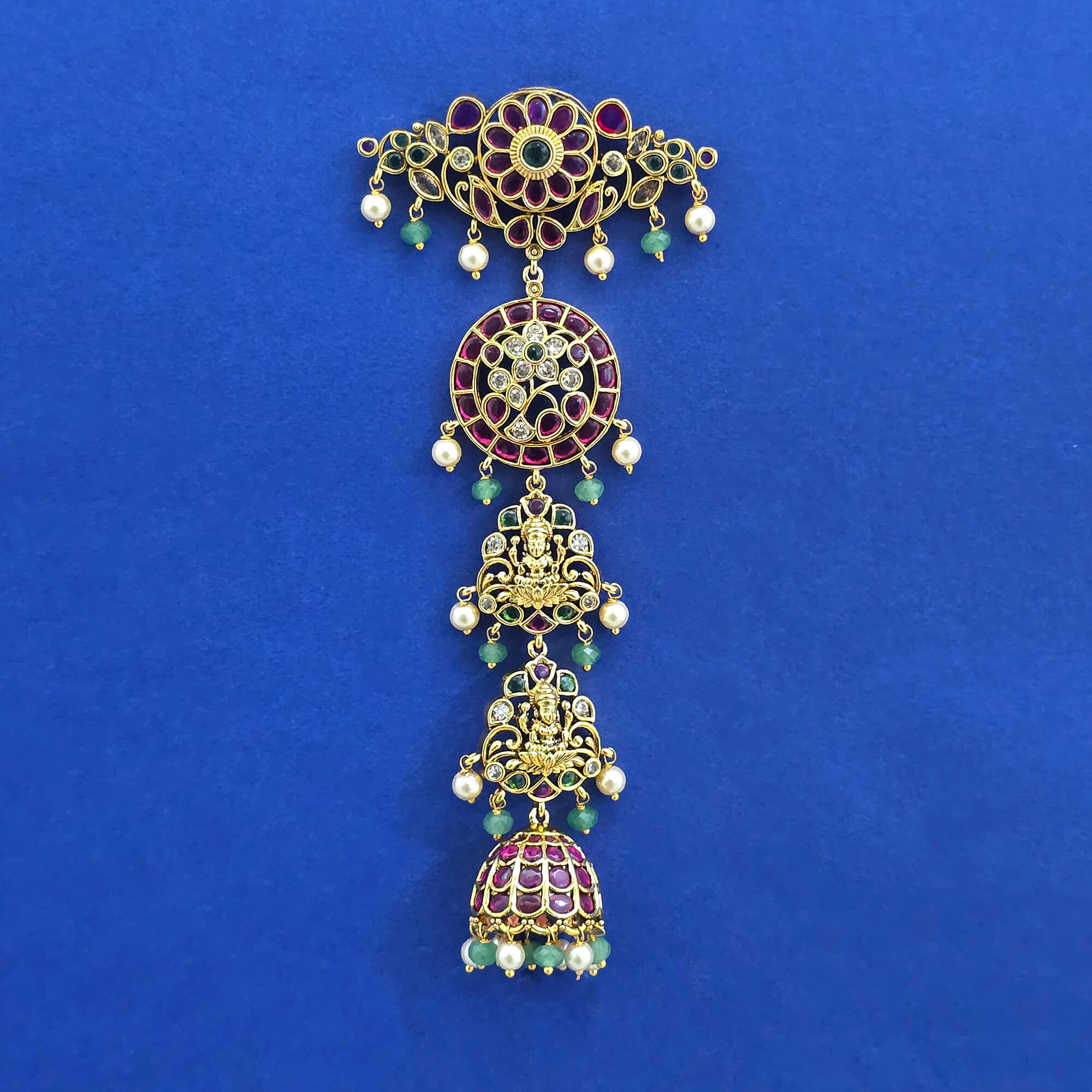 • Antique Moti Hair Brooch with Matte Gold Plating