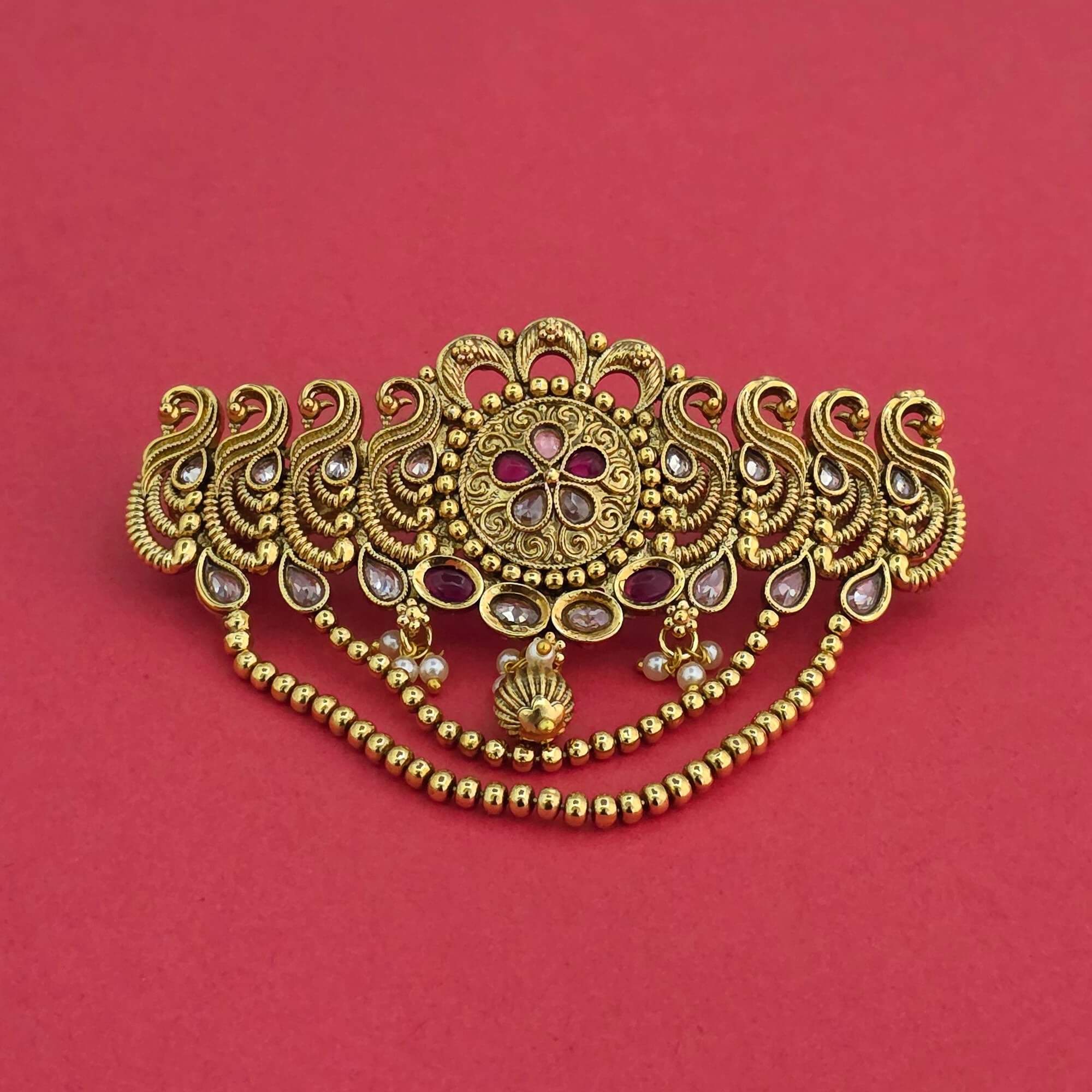Kanhai Jewels offers an exclusive collection of finest quality crafted Fashion Jewellery in various colors. We make sure that our collection of Antique Moti Hair Clip With Gold Plating are beautiful, elegent & will surely galvanize you, because our products are unique, comfortable, fashion forward & very popular for the rich look. Base Metal of our product is Alloy, i.e Mixing of Copper & Brass. We pack all the products using quality packaging material to ensure safe and secure transportation.