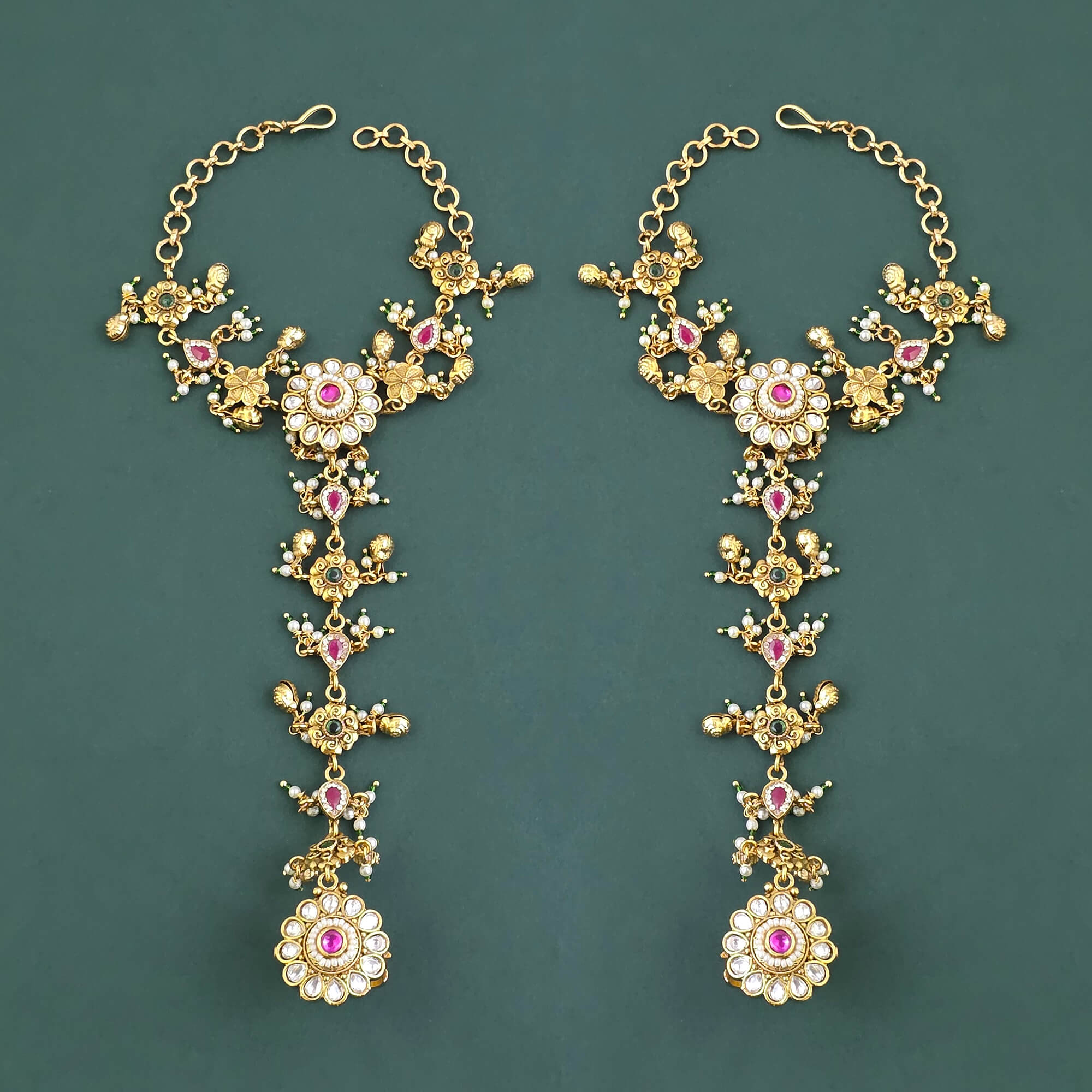 Kanhai Jewels offers an exclusive collection of finest quality crafted Fashion Jewellery in various colors. We make sure that our collection of Antique Moti Hath Pan With Matte Gold Plating are beautiful, elegent & will surely galvanize you, because our products are unique, comfortable, fashion forward & very popular for the rich look. Base Metal of our product is Alloy, i.e Mixing of Copper & Brass. We pack all the products using quality packaging material to ensure safe and secure transportation.