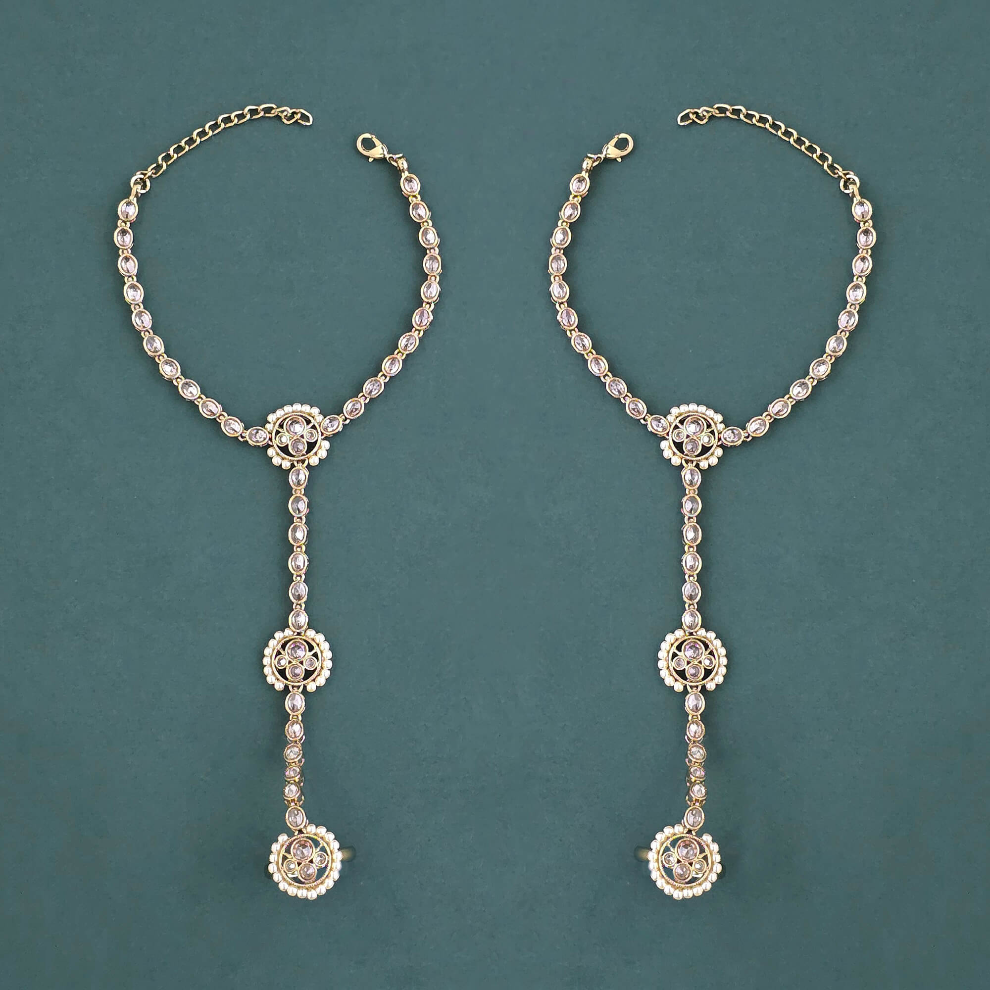 Kanhai Jewels offers an exclusive collection of finest quality crafted Fashion Jewellery in various colors. We make sure that our collection of Antique Moti Hath Pan With Mehndi Plating are beautiful, elegent & will surely galvanize you, because our products are unique, comfortable, fashion forward & very popular for the rich look. Base Metal of our product is Alloy, i.e Mixing of Copper & Brass. We pack all the products using quality packaging material to ensure safe and secure transportation.