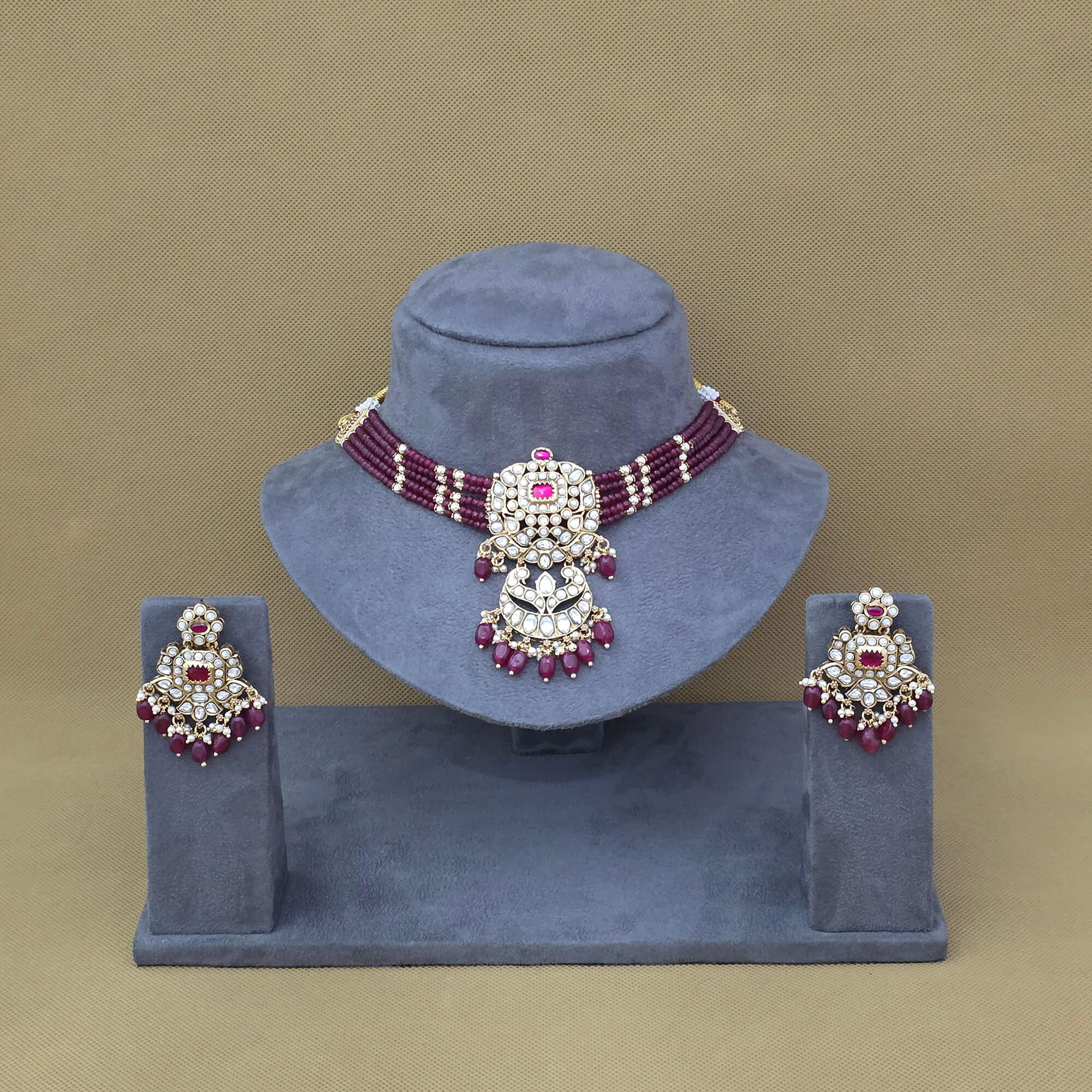 Kanhai Jewels offers an exclusive collection of finest quality crafted Fashion Jewellery in various colors. We make sure that our collection of Antique Moti Necklace Set With Matte Gold Plating are beautiful, elegent & will surely galvanize you, because our products are unique, comfortable, fashion forward & very popular for the rich look. Base Metal of our product is Alloy, i.e Mixing of Copper & Brass. We pack all the products using quality packaging material to ensure safe and secure transportation.
