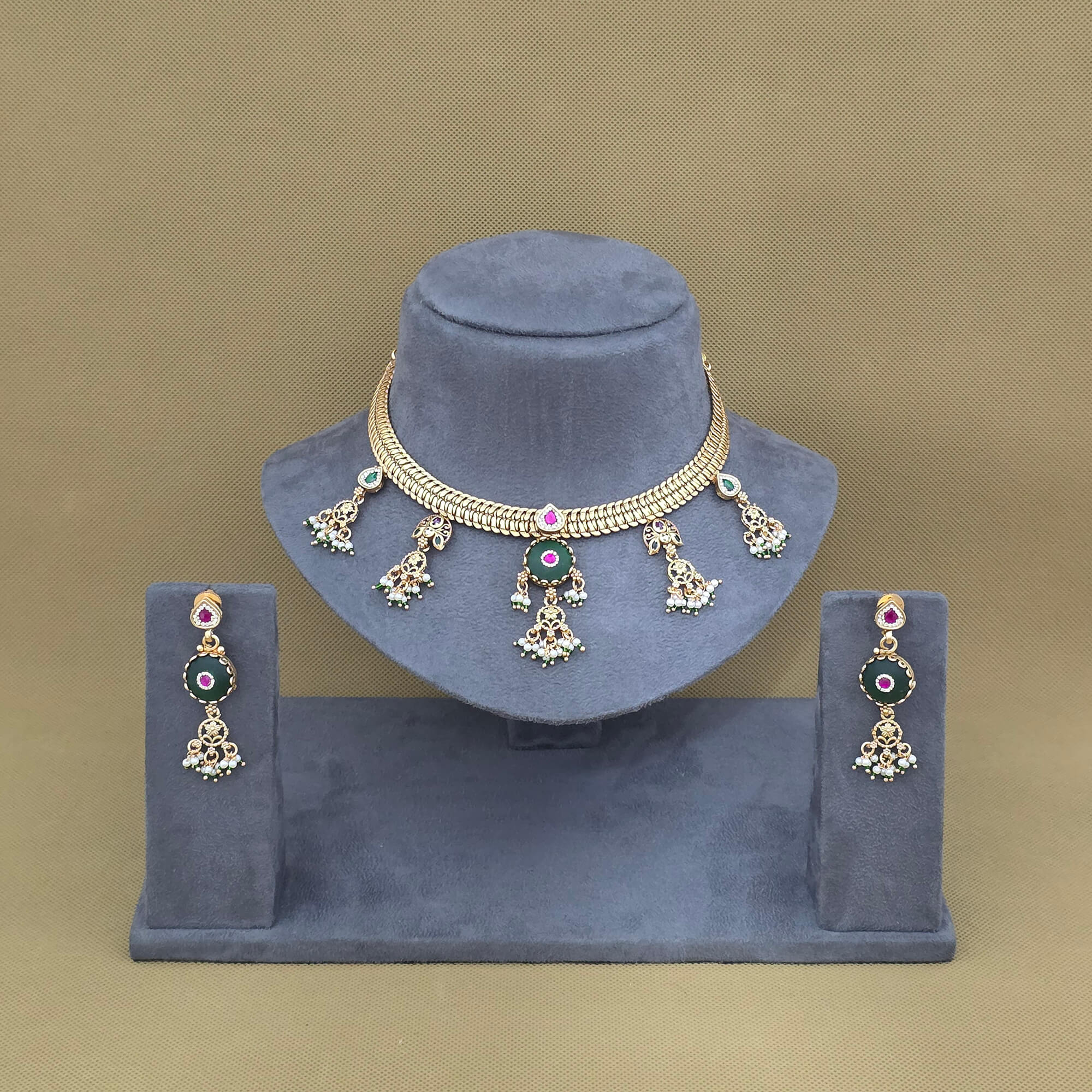 Kanhai Jewels offers an exclusive collection of finest quality crafted Fashion Jewellery in various colors. We make sure that our collection of Antique Moti Necklace Set With Matte Gold Plating are beautiful, elegent & will surely galvanize you, because our products are unique, comfortable, fashion forward & very popular for the rich look. Base Metal of our product is Alloy, i.e Mixing of Copper & Brass. We pack all the products using quality packaging material to ensure safe and secure transportation.