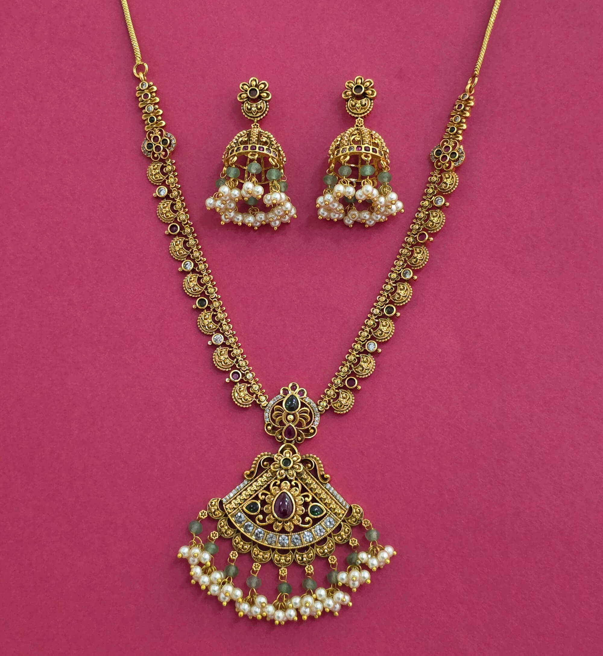 229064 Antique Moti Necklace Set With Matte Gold PlatingNew