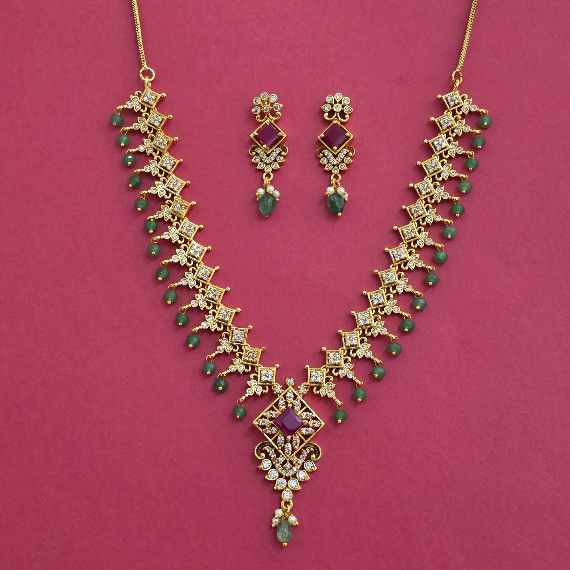 Kanhai Jewels offers an exclusive collection of finest quality crafted Fashion Jewellery in various colors. We make sure that our collection of Antique Moti Necklace Set With Matte Gold Plating are beautiful, elegent & will surely galvanize you, because our products are unique, comfortable, fashion forward & very popular for the rich look. Base Metal of our product is Alloy, i.e Mixing of Copper & Brass. We pack all the products using quality packaging material to ensure safe and secure transportation.
