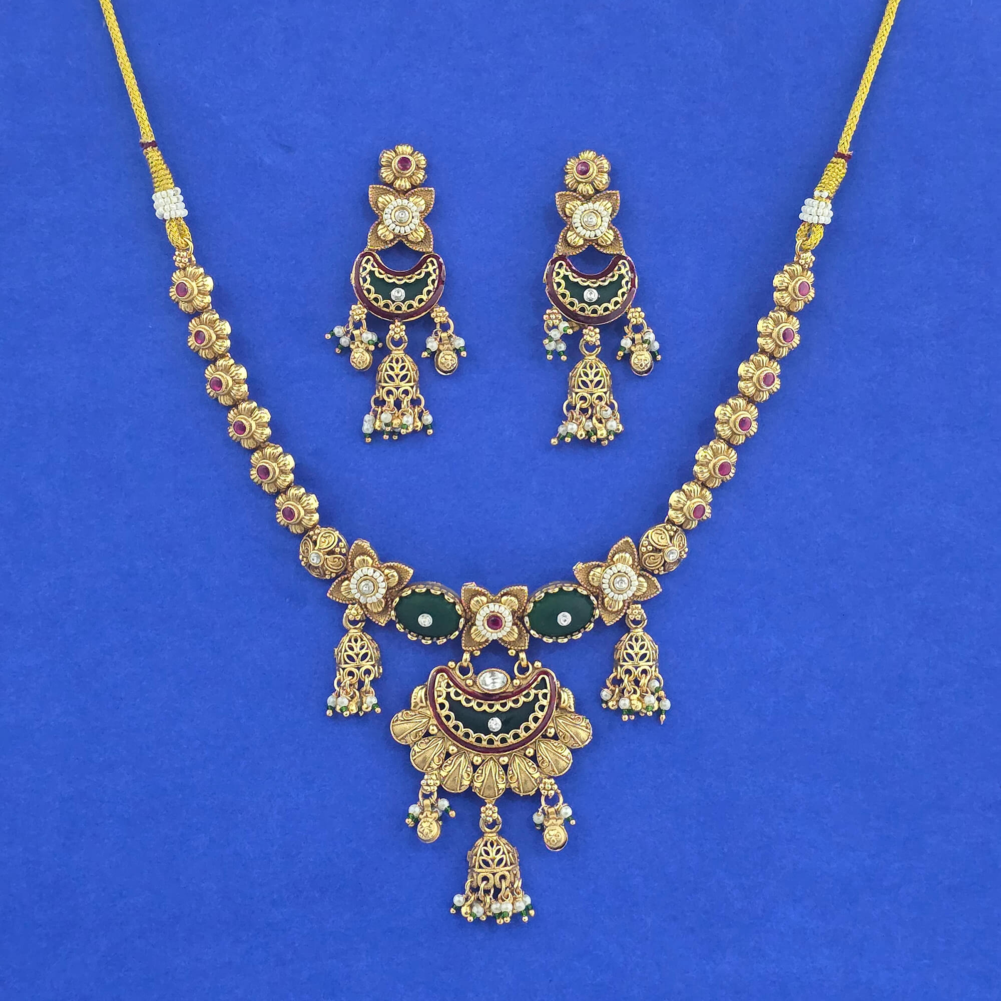 Home / Antique Necklace / antique moti necklace set with matte gold plating
