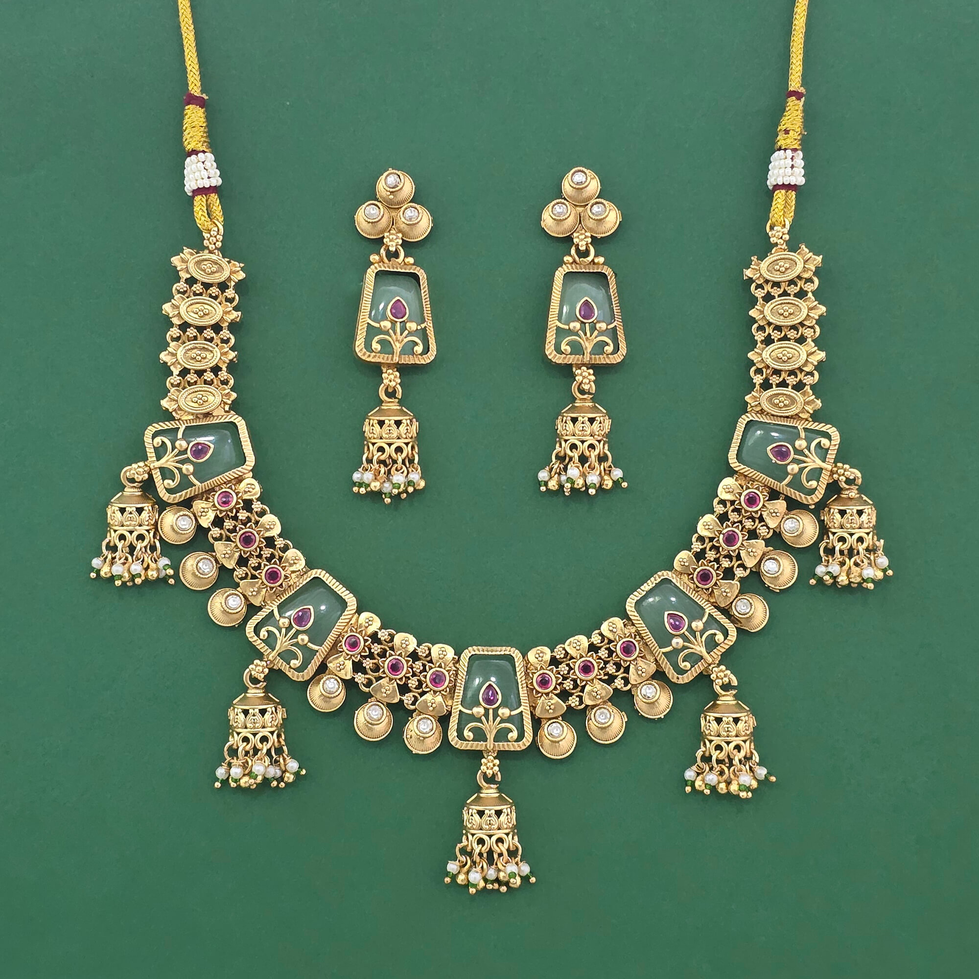 Kanhai Jewels Offers An Exclusive Collection Of Finest Quality Crafted Fashion Jewellery In Various Colors. We Make Sure That Our Collection Of Antique Moti Necklace Set With Matte Gold Plating Are Beautiful, Elegent & Will Surely Galvanize You, Because Our Products Are Unique, Comfortable, Fashion Forward & Very Popular For The Rich Look. Base Metal Of Our Product Is Alloy, I.E Mixing Of Copper & Brass. We Pack All The Products Using Quality Packaging Material To Ensure Safe And Secure Transportation.
