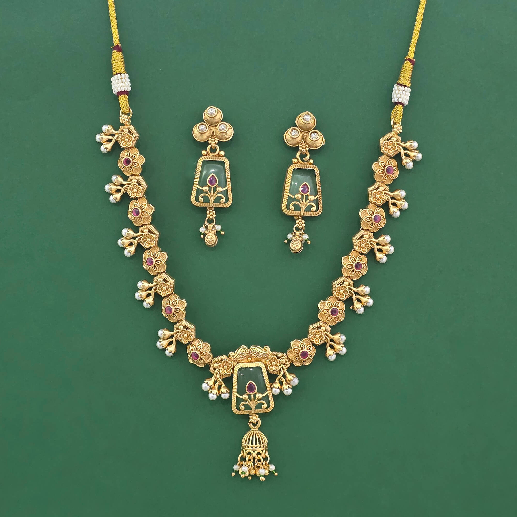Kanhai Jewels Offers An Exclusive Collection Of Finest Quality Crafted Fashion Jewellery In Various Colors. We Make Sure That Our Collection Of Antique Moti Necklace Set With Matte Gold Plating Are Beautiful, Elegent & Will Surely Galvanize You, Because Our Products Are Unique, Comfortable, Fashion Forward & Very Popular For The Rich Look. Base Metal Of Our Product Is Alloy, I.E Mixing Of Copper & Brass. We Pack All The Products Using Quality Packaging Material To Ensure Safe And Secure Transportation.
