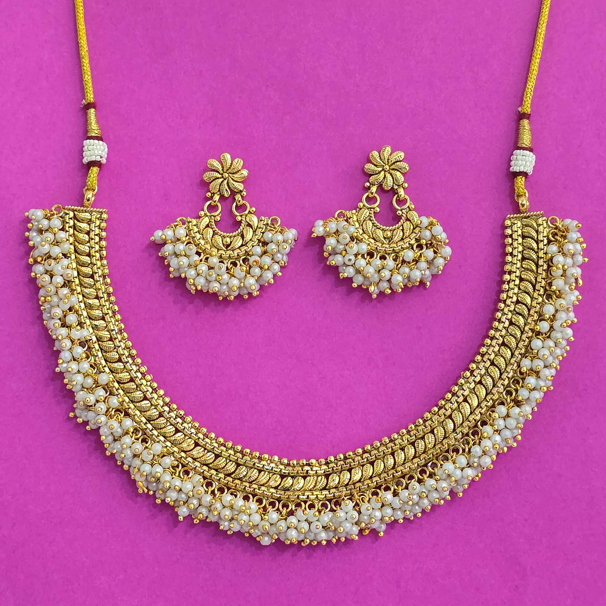 227319 Antique Moti Necklace With Gold PlatingRestock
