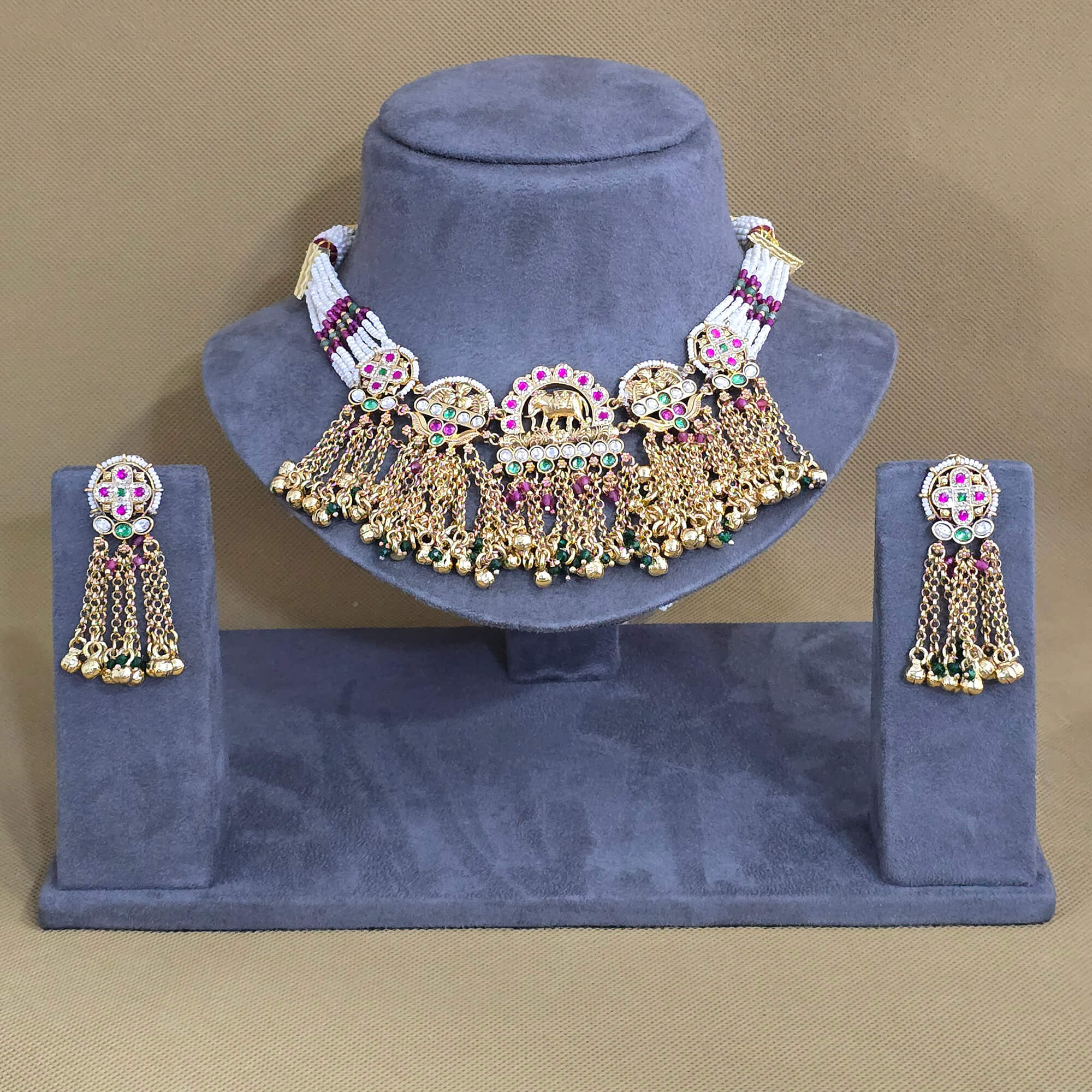 Kanhai Jewels offers an exclusive collection of finest quality crafted Fashion Jewellery in various colors. We make sure that our collection of Antique Moti Necklace With Gold Plating are beautiful, elegent & will surely galvanize you, because our products are unique, comfortable, fashion forward & very popular for the rich look. Base Metal of our product is Alloy, i.e Mixing of Copper & Brass. We pack all the products using quality packaging material to ensure safe and secure transportation.