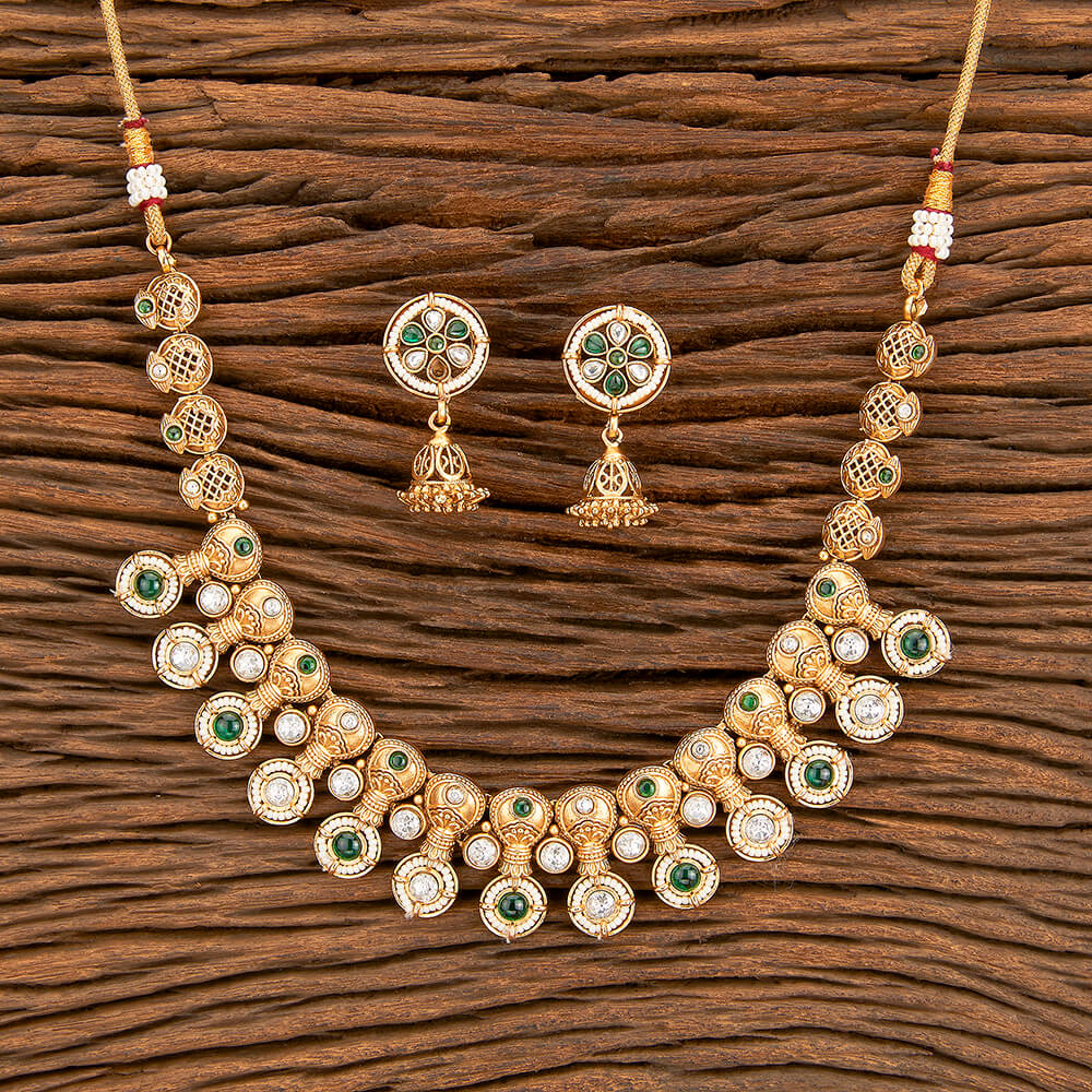 218309 Antique Moti Necklace With Matte Gold Plating