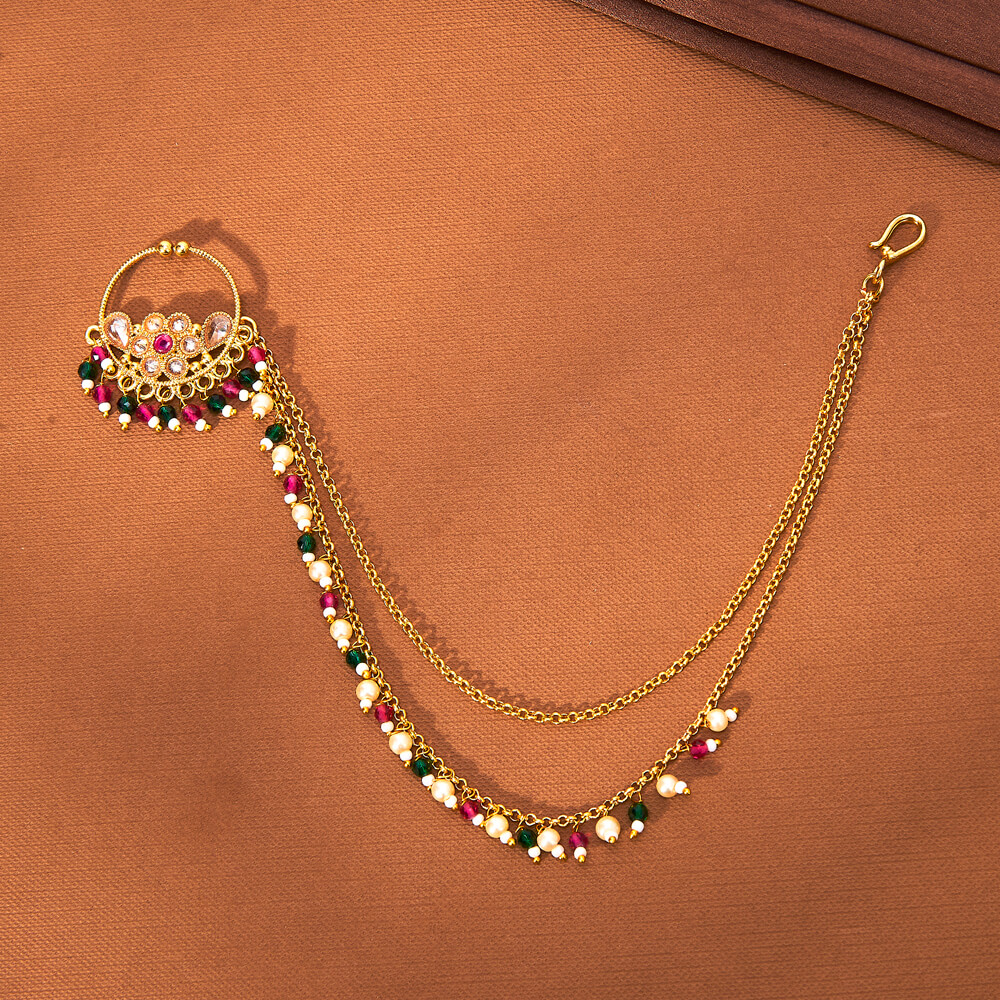 Kanhai Jewels offers an exclusive collection of finest quality crafted Fashion Jewellery in various colors. We make sure that our collection of Antique Moti Nose Ring With Gold Plating are beautiful, elegent & will surely galvanize you, because our products are unique, comfortable, fashion forward & very popular for the rich look. Base Metal of our product is Alloy, i.e Mixing of Copper & Brass. We pack all the products using quality packaging material to ensure safe and secure transportation.
