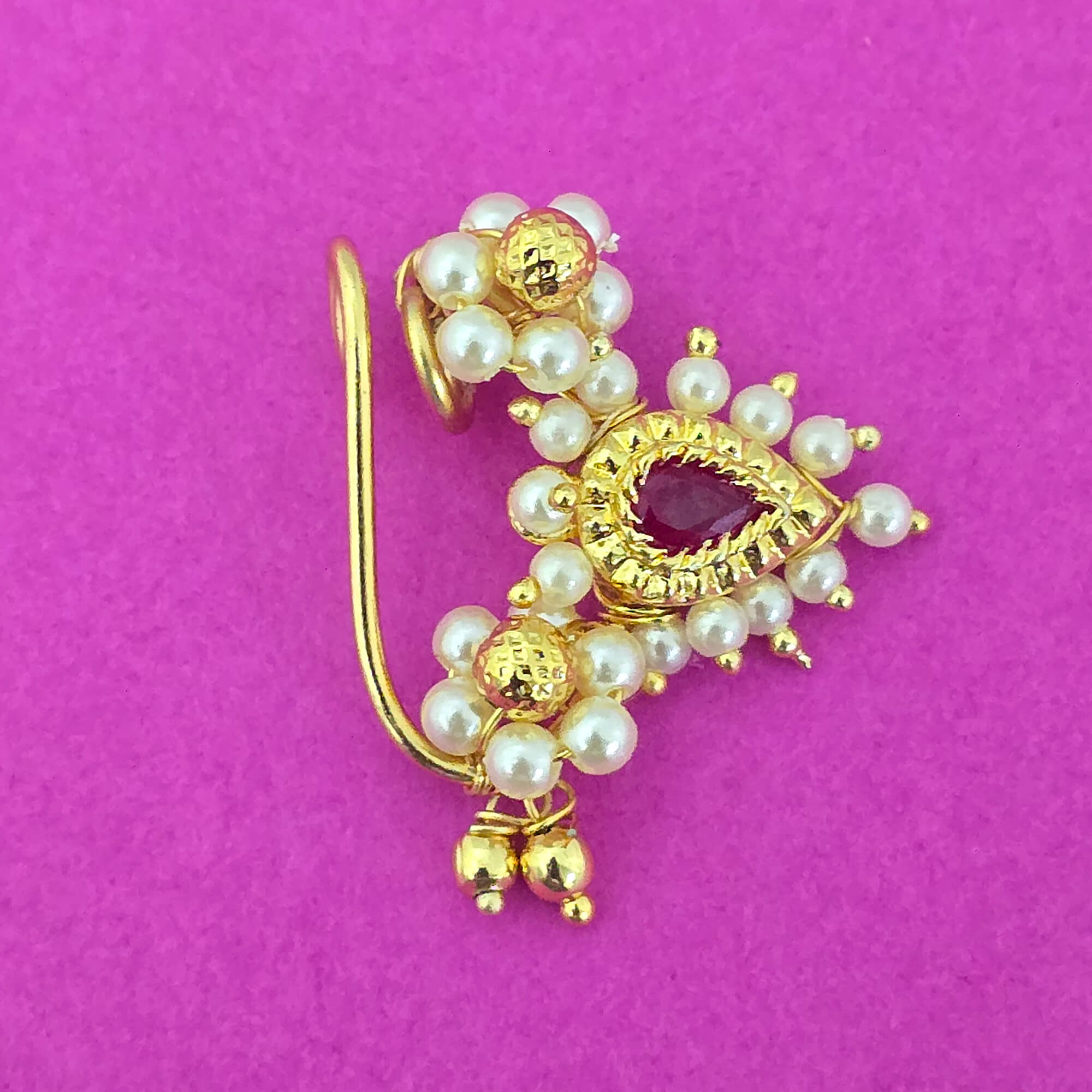 Home / Antique Nose Ring / antique moti nose ring with gold plating