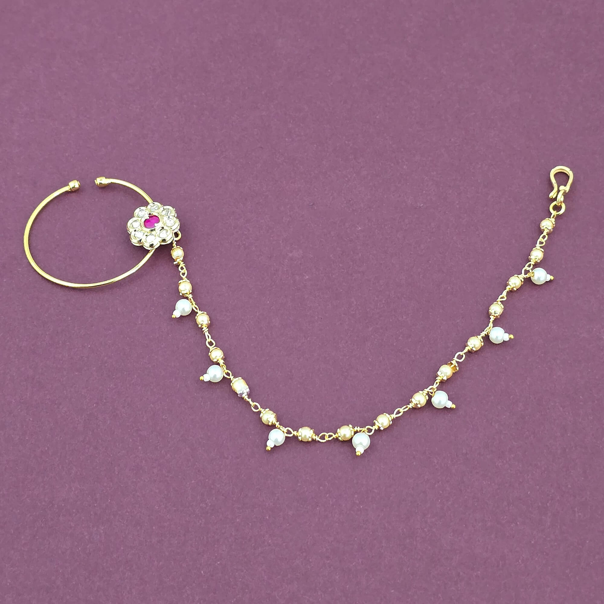 Home / Antique Nose Ring / antique moti nose ring with gold plating