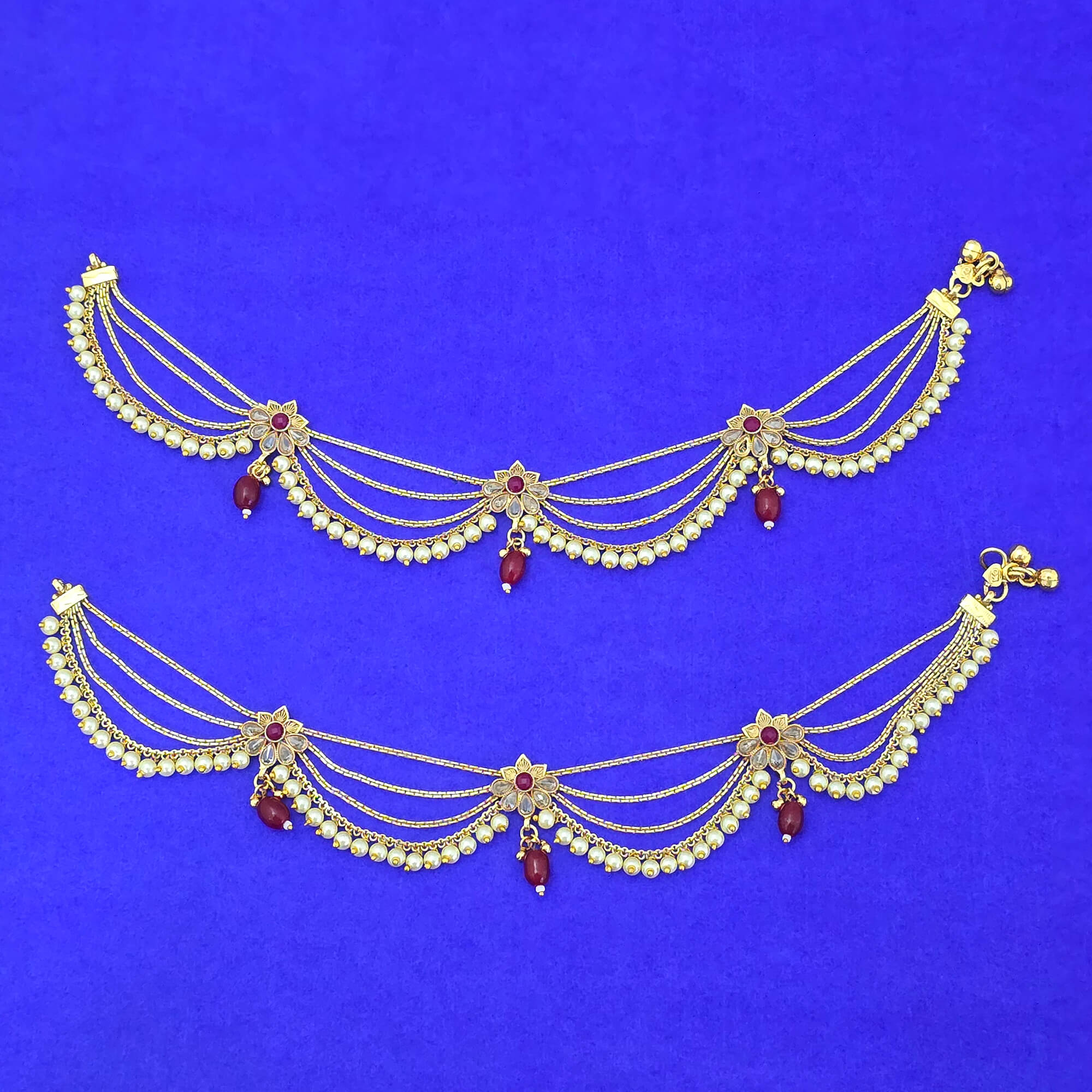 Kanhai Jewels offers an exclusive collection of finest quality crafted Fashion Jewellery in various colors. We make sure that our collection of Antique Moti Payal With Gold Plating are beautiful, elegent & will surely galvanize you, because our products are unique, comfortable, fashion forward & very popular for the rich look. Base Metal of our product is Alloy, i.e Mixing of Copper & Brass. We pack all the products using quality packaging material to ensure safe and secure transportation.
