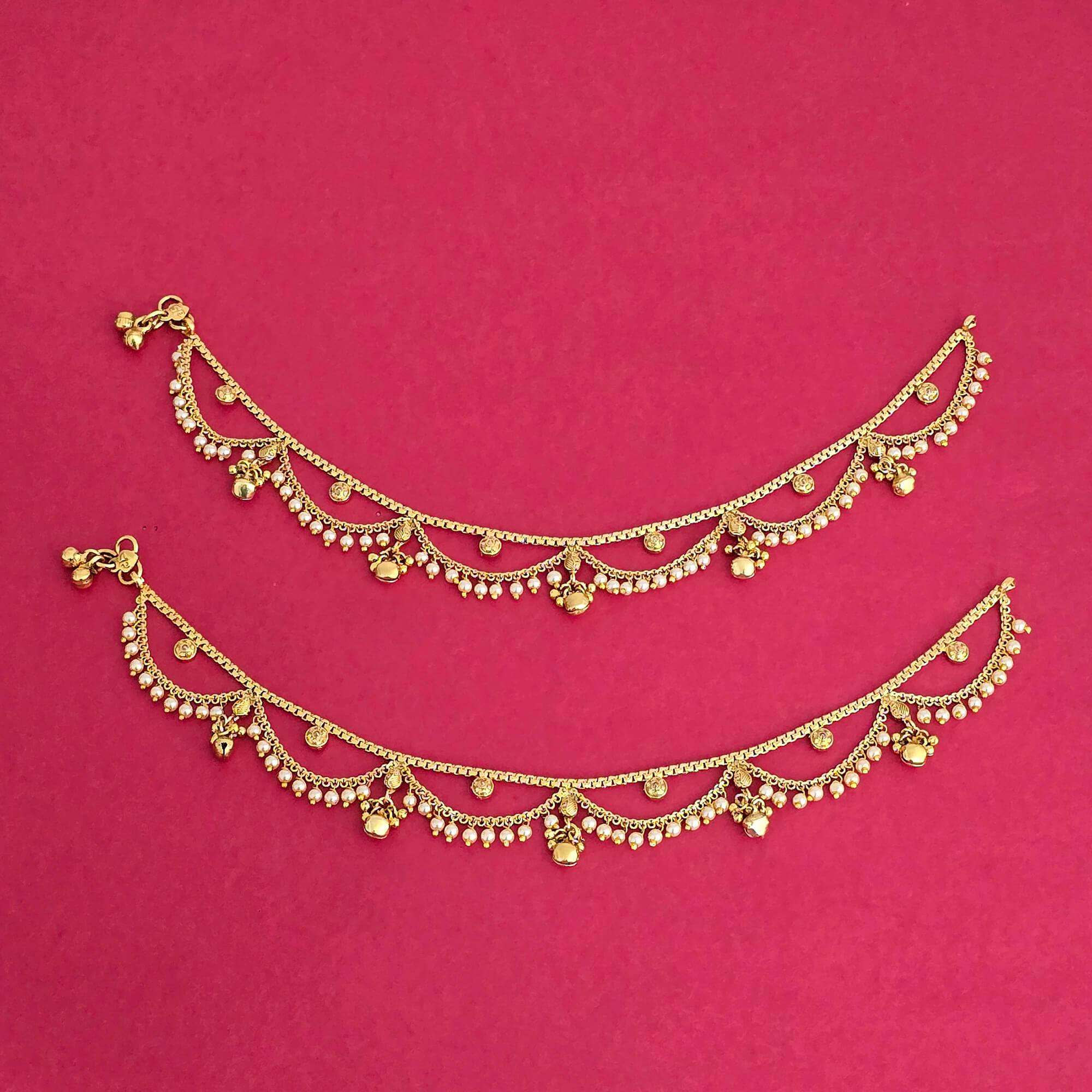 Kanhai Jewels offers an exclusive collection of finest quality crafted Fashion Jewellery in various colors. We make sure that our collection of Antique Moti Payal With Gold Plating are beautiful, elegent & will surely galvanize you, because our products are unique, comfortable, fashion forward & very popular for the rich look. Base Metal of our product is Alloy, i.e Mixing of Copper & Brass. We pack all the products using quality packaging material to ensure safe and secure transportation.