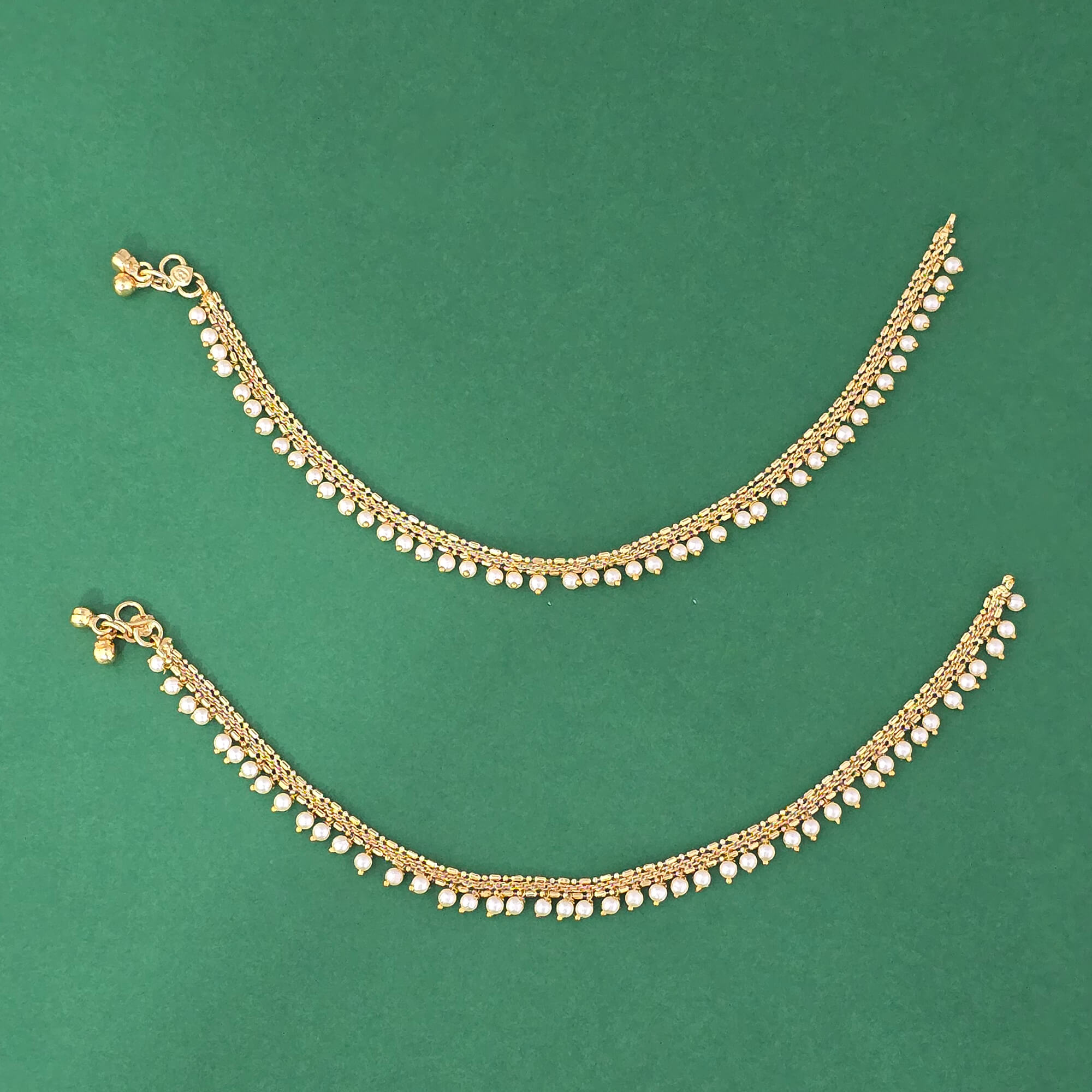 Kanhai Jewels offers an exclusive collection of finest quality crafted Fashion Jewellery in various colors. We make sure that our collection of Antique Moti Payal With Gold Plating are beautiful, elegent & will surely galvanize you, because our products are unique, comfortable, fashion forward & very popular for the rich look. Base Metal of our product is Alloy, i.e Mixing of Copper & Brass. We pack all the products using quality packaging material to ensure safe and secure transportation.