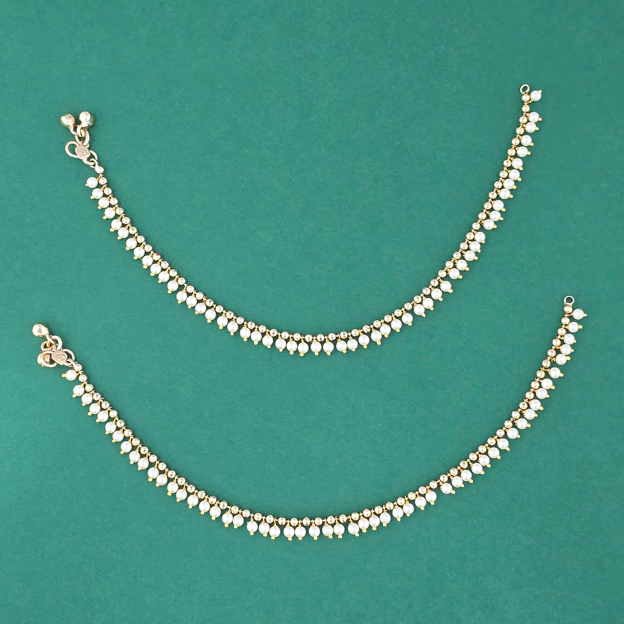 Kanhai Jewels offers an exclusive collection of finest quality crafted Fashion Jewellery in various colors. We make sure that our collection of Antique Moti Payal With Gold Plating are beautiful, elegent & will surely galvanize you, because our products are unique, comfortable, fashion forward & very popular for the rich look. Base Metal of our product is Alloy, i.e Mixing of Copper & Brass. We pack all the products using quality packaging material to ensure safe and secure transportation.