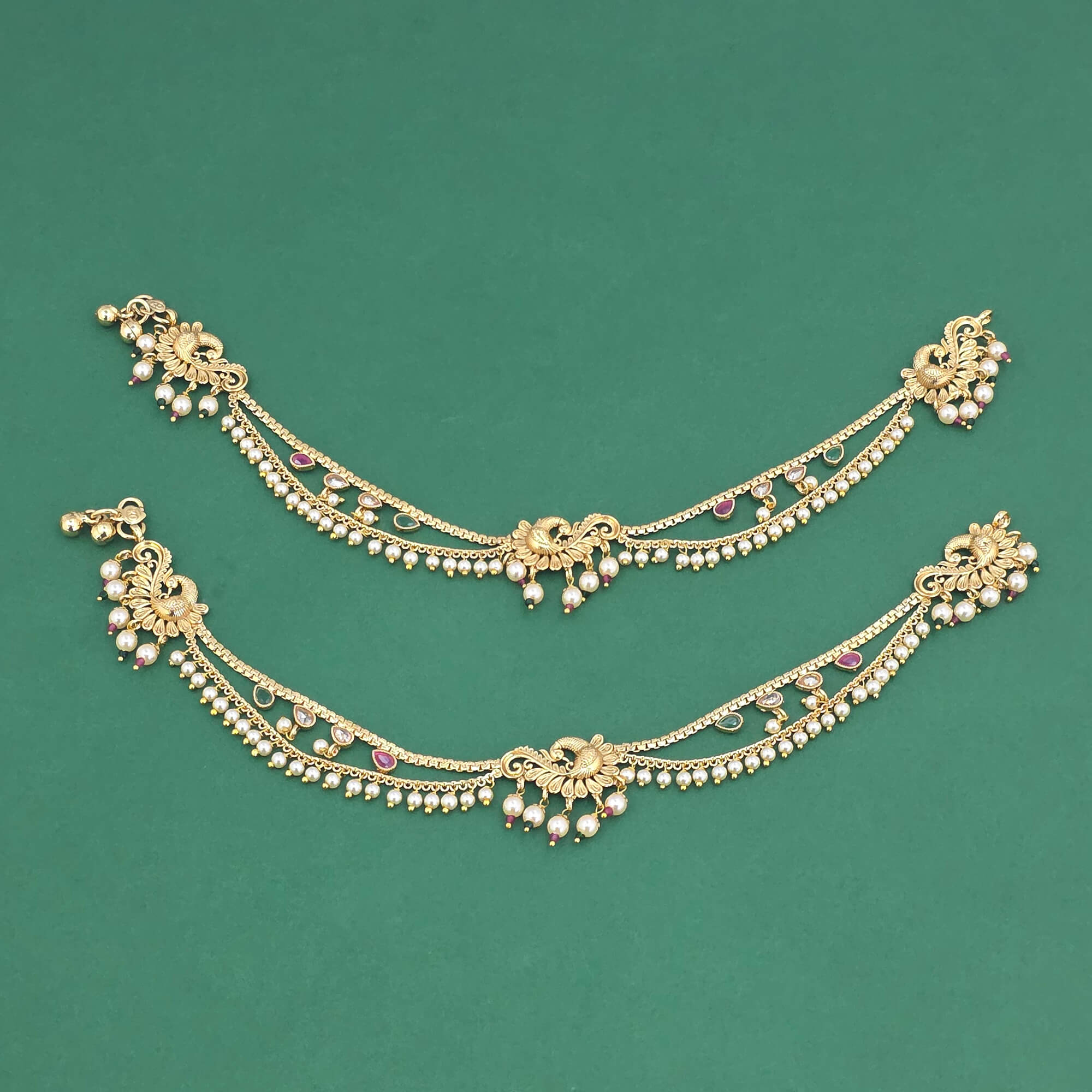 Kanhai Jewels offers an exclusive collection of finest quality crafted Fashion Jewellery in various colors. We make sure that our collection of Antique Moti Payal With Gold Plating are beautiful, elegent & will surely galvanize you, because our products are unique, comfortable, fashion forward & very popular for the rich look. Base Metal of our product is Alloy, i.e Mixing of Copper & Brass. We pack all the products using quality packaging material to ensure safe and secure transportation.