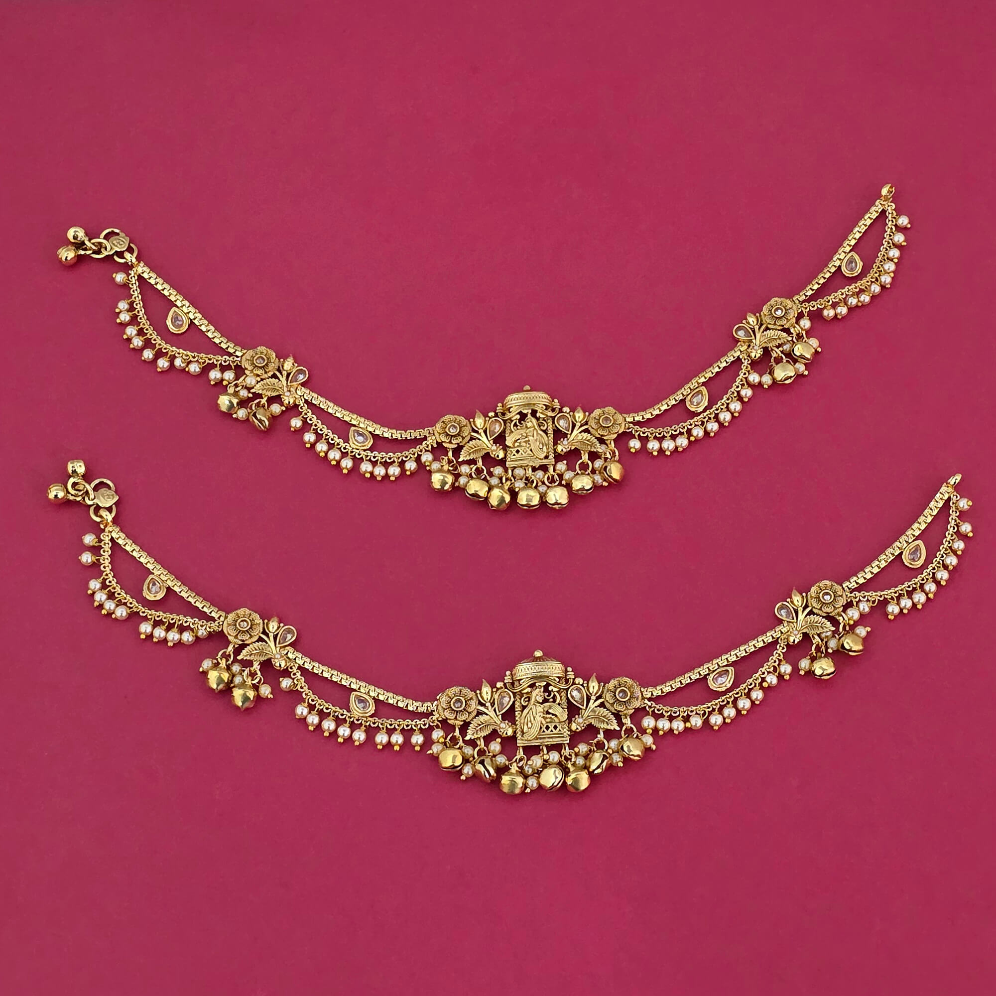 Kanhai Jewels offers an exclusive collection of finest quality crafted Fashion Jewellery in various colors. We make sure that our collection of Antique Moti Payal With Gold Plating are beautiful, elegent & will surely galvanize you, because our products are unique, comfortable, fashion forward & very popular for the rich look. Base Metal of our product is Alloy, i.e Mixing of Copper & Brass. We pack all the products using quality packaging material to ensure safe and secure transportation.