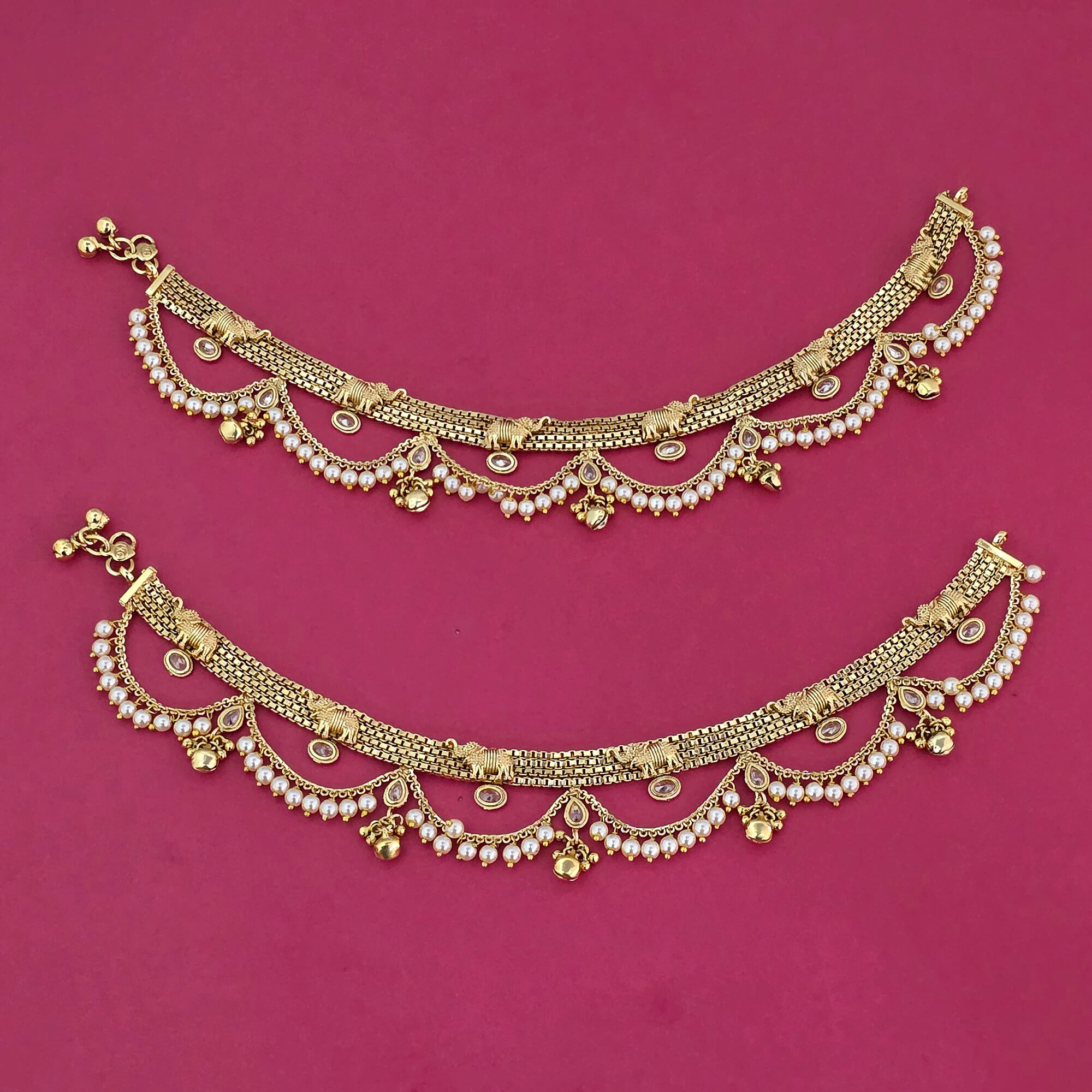 Kanhai Jewels offers an exclusive collection of finest quality crafted Fashion Jewellery in various colors. We make sure that our collection of Antique Moti Payal With Gold Plating are beautiful, elegent & will surely galvanize you, because our products are unique, comfortable, fashion forward & very popular for the rich look. Base Metal of our product is Alloy, i.e Mixing of Copper & Brass. We pack all the products using quality packaging material to ensure safe and secure transportation.