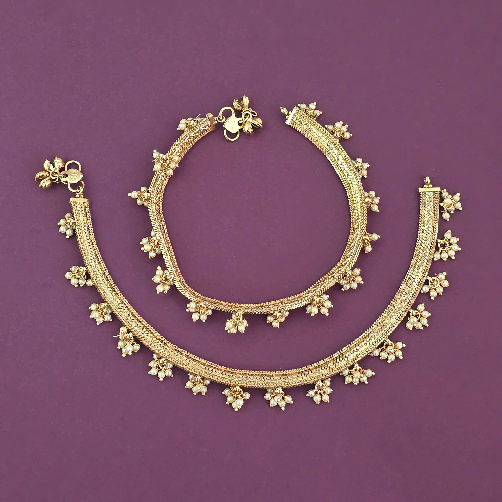 Kanhai Jewels offers an exclusive collection of finest quality crafted Fashion Jewellery in various colors. We make sure that our collection of Antique Moti Payal With Gold Plating are beautiful, elegent & will surely galvanize you, because our products are unique, comfortable, fashion forward & very popular for the rich look. Base Metal of our product is Alloy, i.e Mixing of Copper & Brass. We pack all the products using quality packaging material to ensure safe and secure transportation.