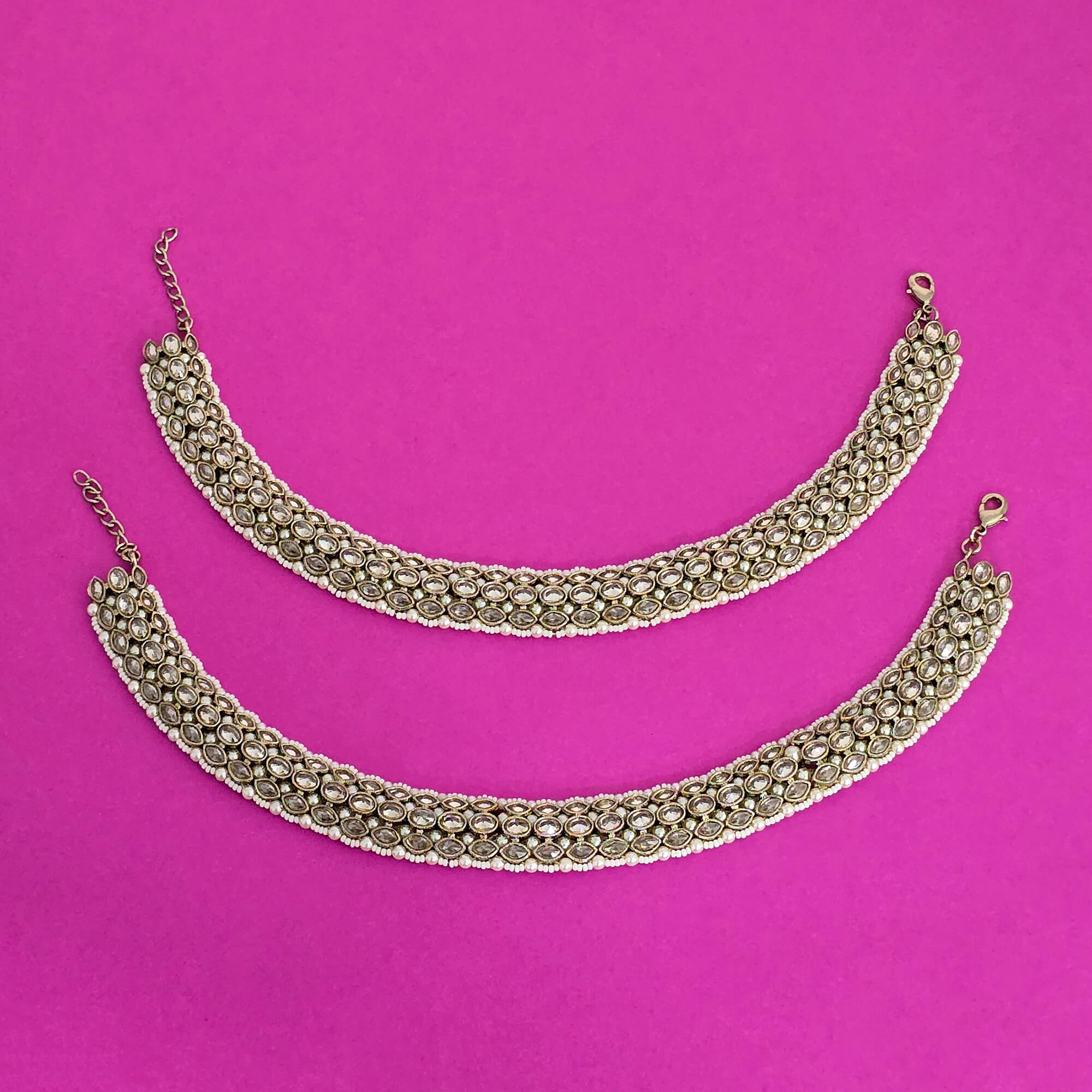Kanhai Jewels offers an exclusive collection of finest quality crafted Fashion Jewellery in various colors. We make sure that our collection of Antique Moti Payal With Mehndi Plating are beautiful, elegent & will surely galvanize you, because our products are unique, comfortable, fashion forward & very popular for the rich look. Base Metal of our product is Alloy, i.e Mixing of Copper & Brass. We pack all the products using quality packaging material to ensure safe and secure transportation.