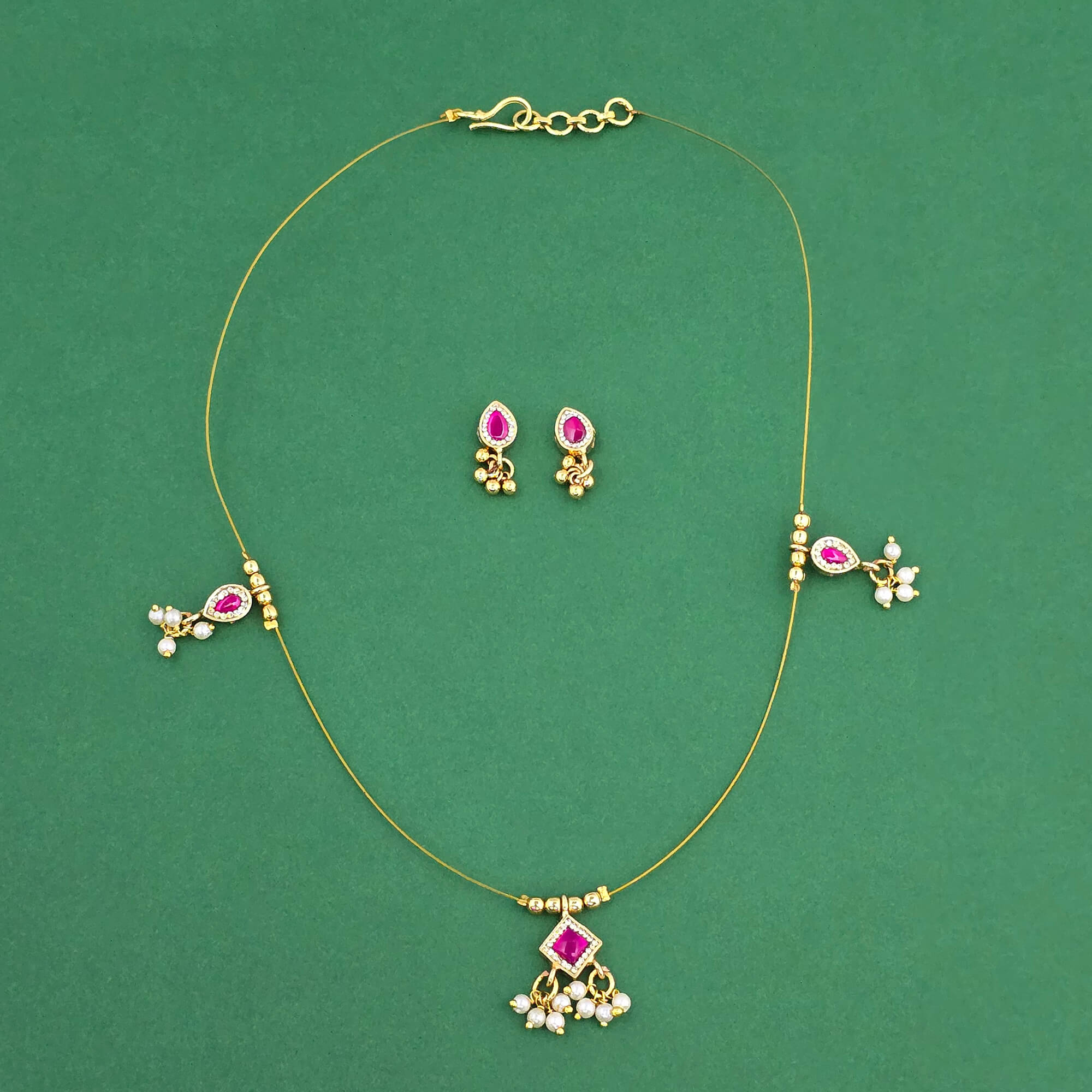 Home / Antique Pendant Set / antique moti pendant set with gold plating