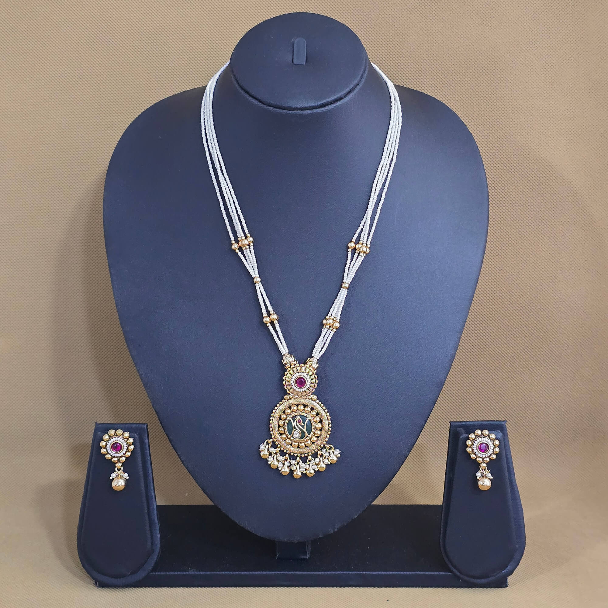 228190 Antique Moti Pendant Set With Matte Gold PlatingNew