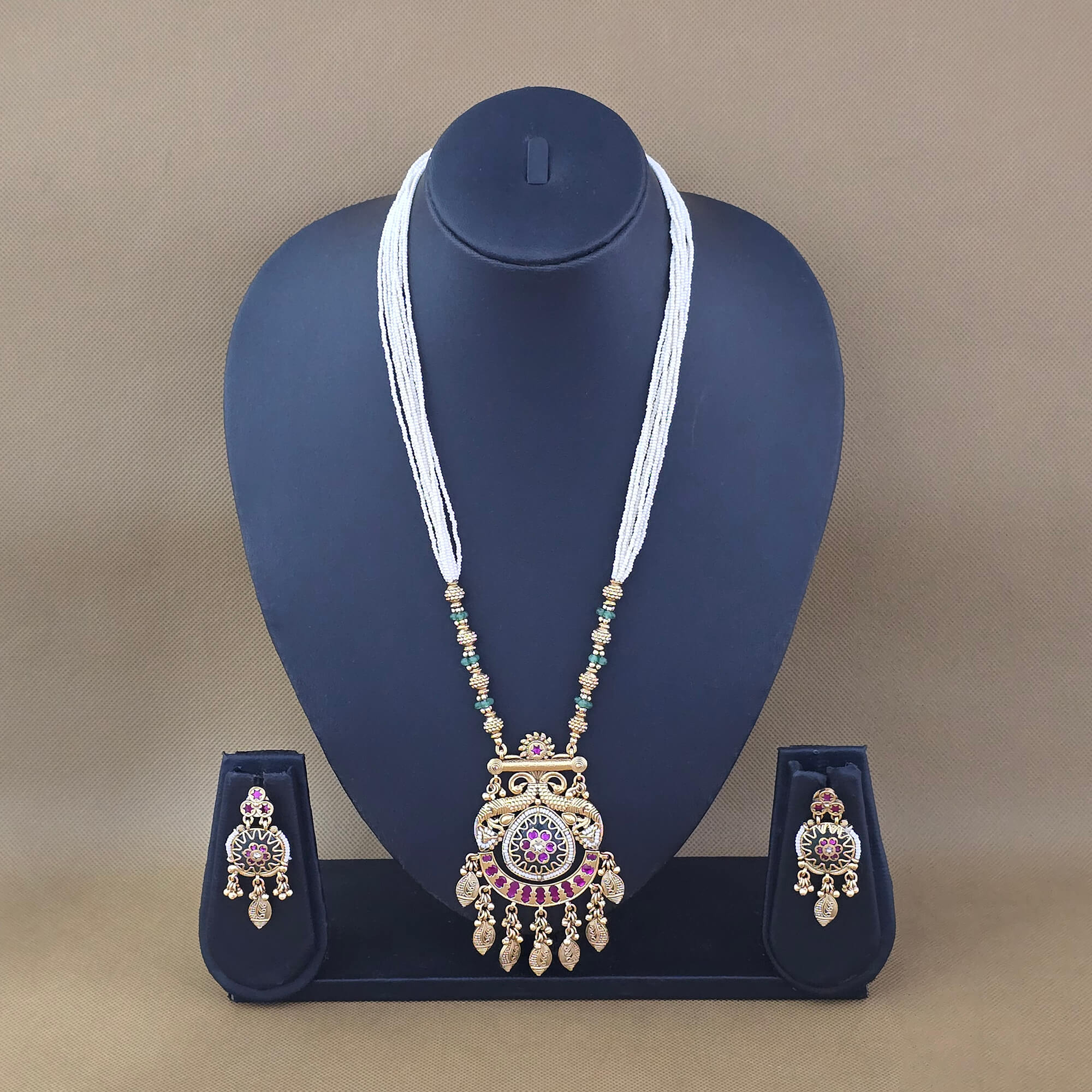Home / Antique Pendant Set / antique moti pendant set with matte gold plating