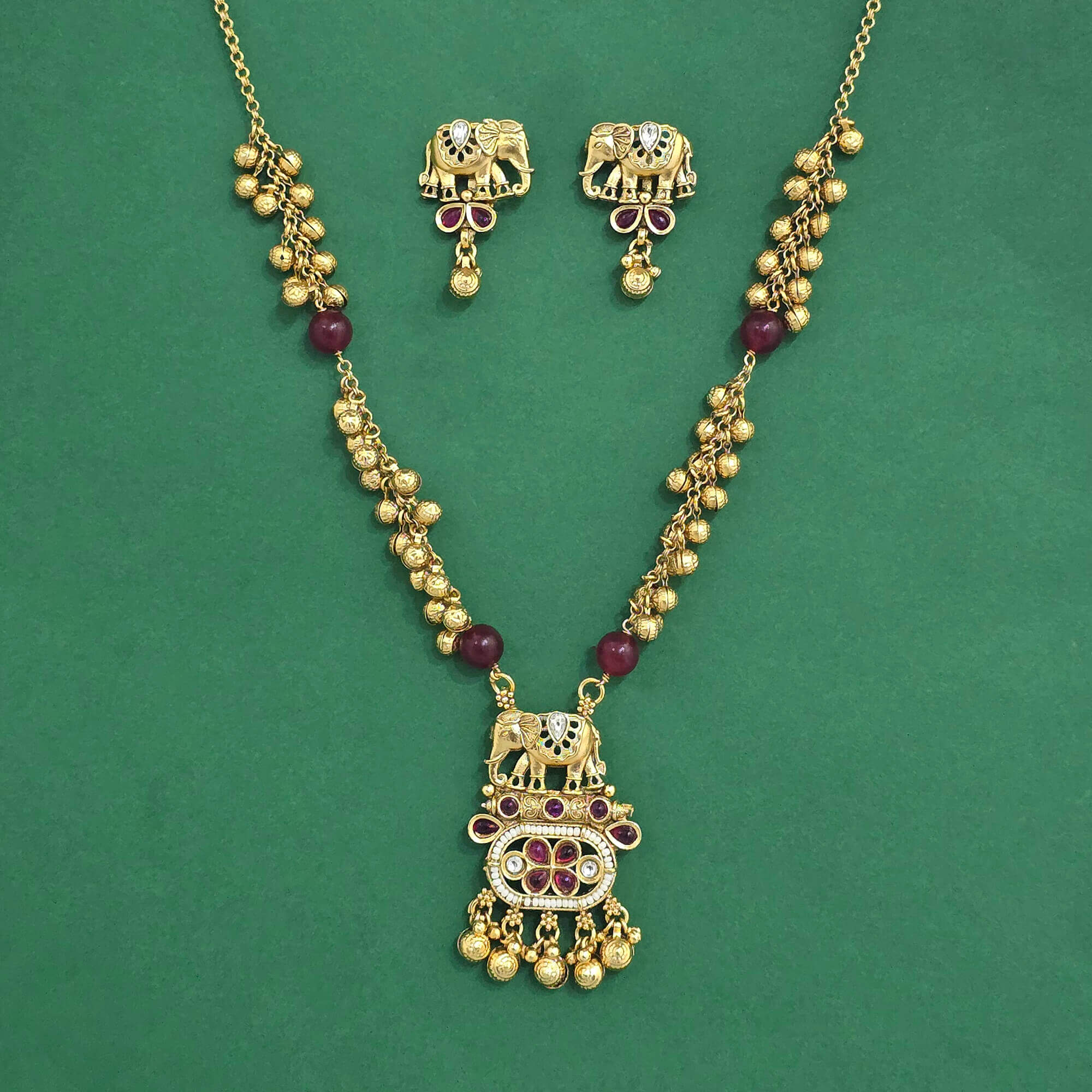 Kanhai Jewels offers an exclusive collection of finest quality crafted Fashion Jewellery in various colors. We make sure that our collection of Antique Moti Pendant Set With Matte Gold Plating are beautiful, elegent & will surely galvanize you, because our products are unique, comfortable, fashion forward & very popular for the rich look. Base Metal of our product is Alloy, i.e Mixing of Copper & Brass. We pack all the products using quality packaging material to ensure safe and secure transportation.