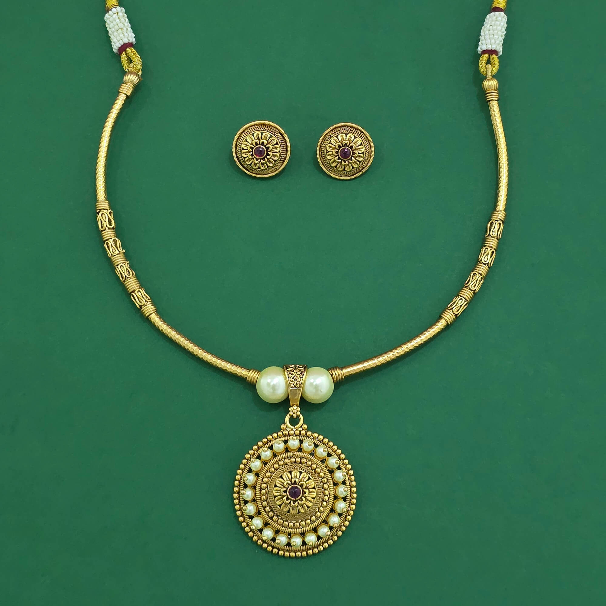 Kanhai Jewels offers an exclusive collection of finest quality crafted Fashion Jewellery in various colors. We make sure that our collection of Antique Moti Pendant Set With Matte Gold Plating are beautiful, elegent & will surely galvanize you, because our products are unique, comfortable, fashion forward & very popular for the rich look. Base Metal of our product is Alloy, i.e Mixing of Copper & Brass. We pack all the products using quality packaging material to ensure safe and secure transportation.