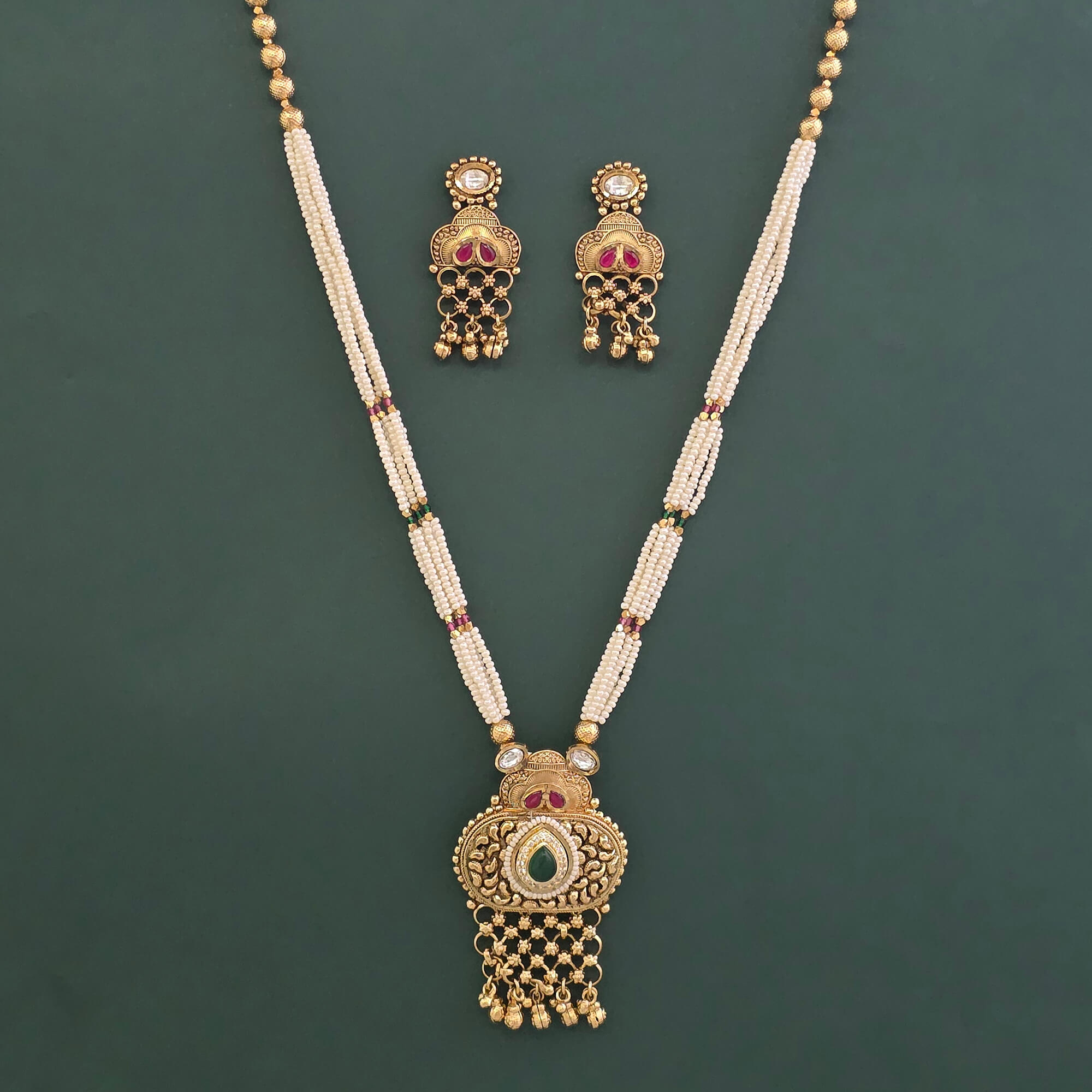 • Antique Moti Pendant Set With Matte Gold Plating