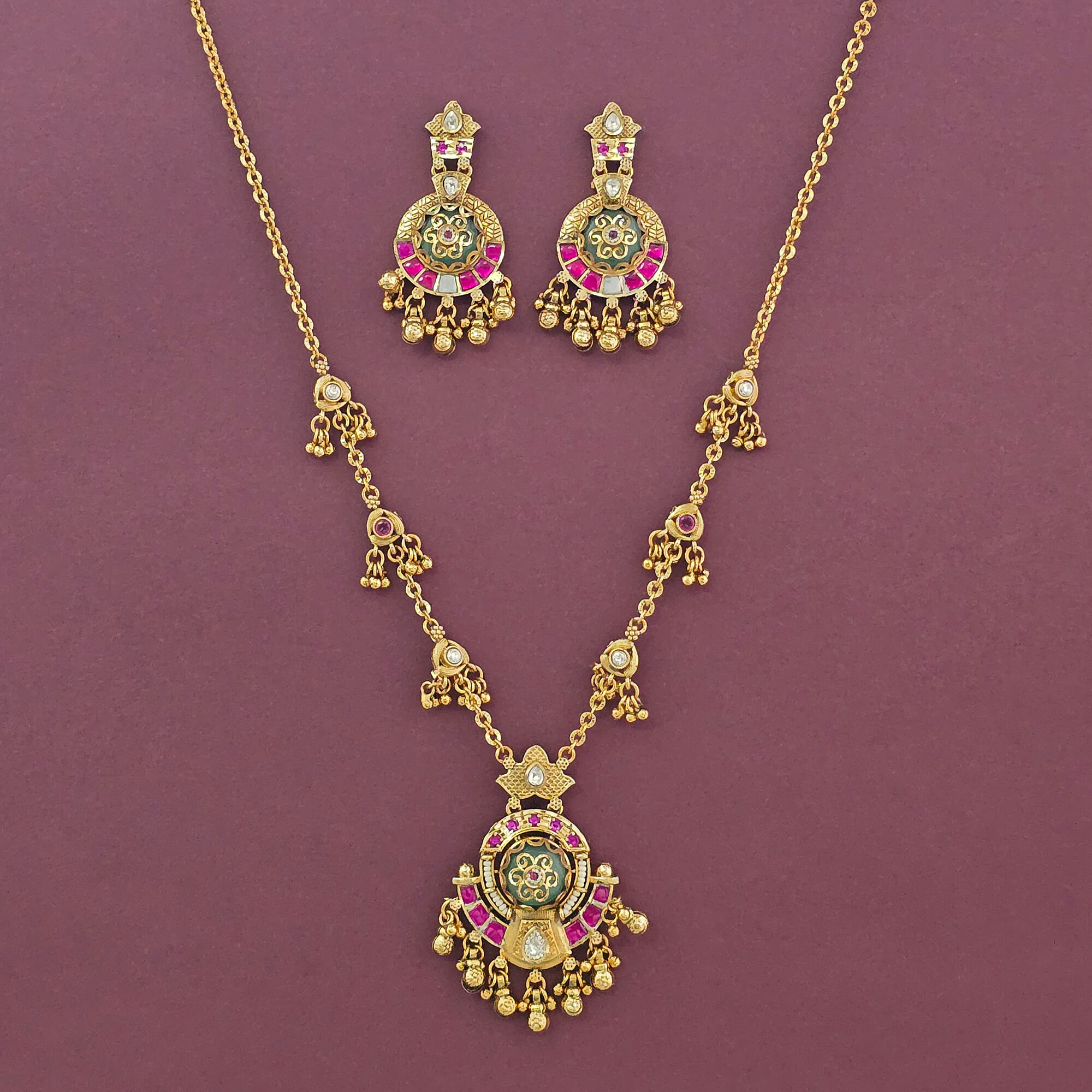 Kanhai Jewels offers an exclusive collection of finest quality crafted Fashion Jewellery in various colors. We make sure that our collection of Antique Moti Pendant Set With Matte Gold Plating are beautiful, elegent & will surely galvanize you, because our products are unique, comfortable, fashion forward & very popular for the rich look. Base Metal of our product is Alloy, i.e Mixing of Copper & Brass. We pack all the products using quality packaging material to ensure safe and secure transportation.