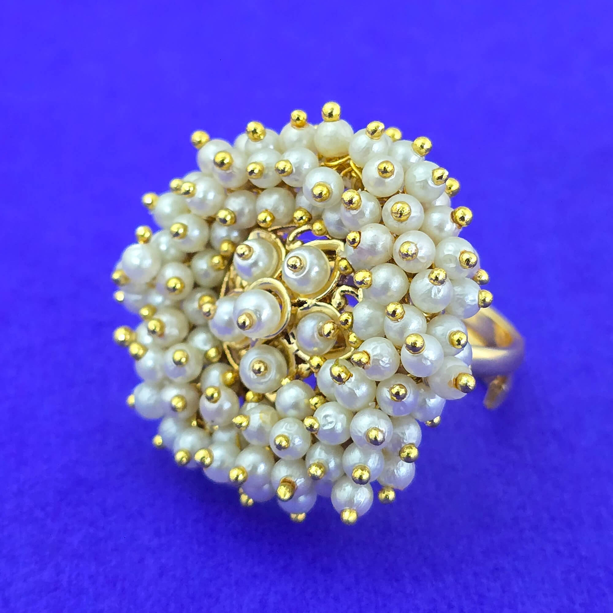 Kanhai Jewels offers an exclusive collection of finest quality crafted Fashion Jewellery in various colors. We make sure that our collection of Antique Moti Ring With Gold Plating are beautiful, elegent & will surely galvanize you, because our products are unique, comfortable, fashion forward & very popular for the rich look. Base Metal of our product is Alloy, i.e Mixing of Copper & Brass. We pack all the products using quality packaging material to ensure safe and secure transportation.