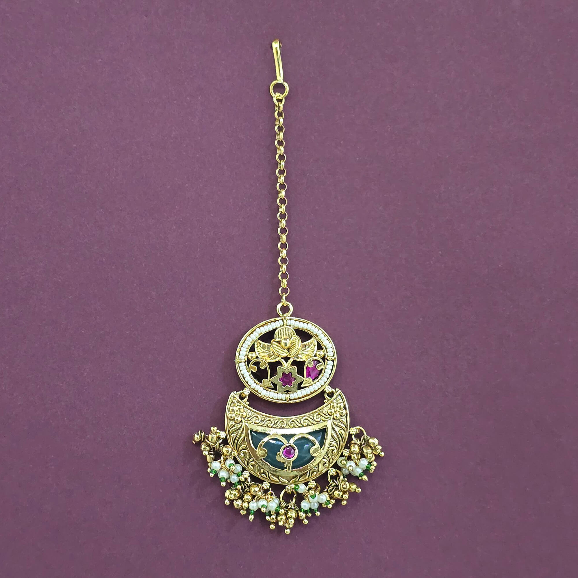 230224 Antique Moti Tikka With Matte Gold PlatingNew