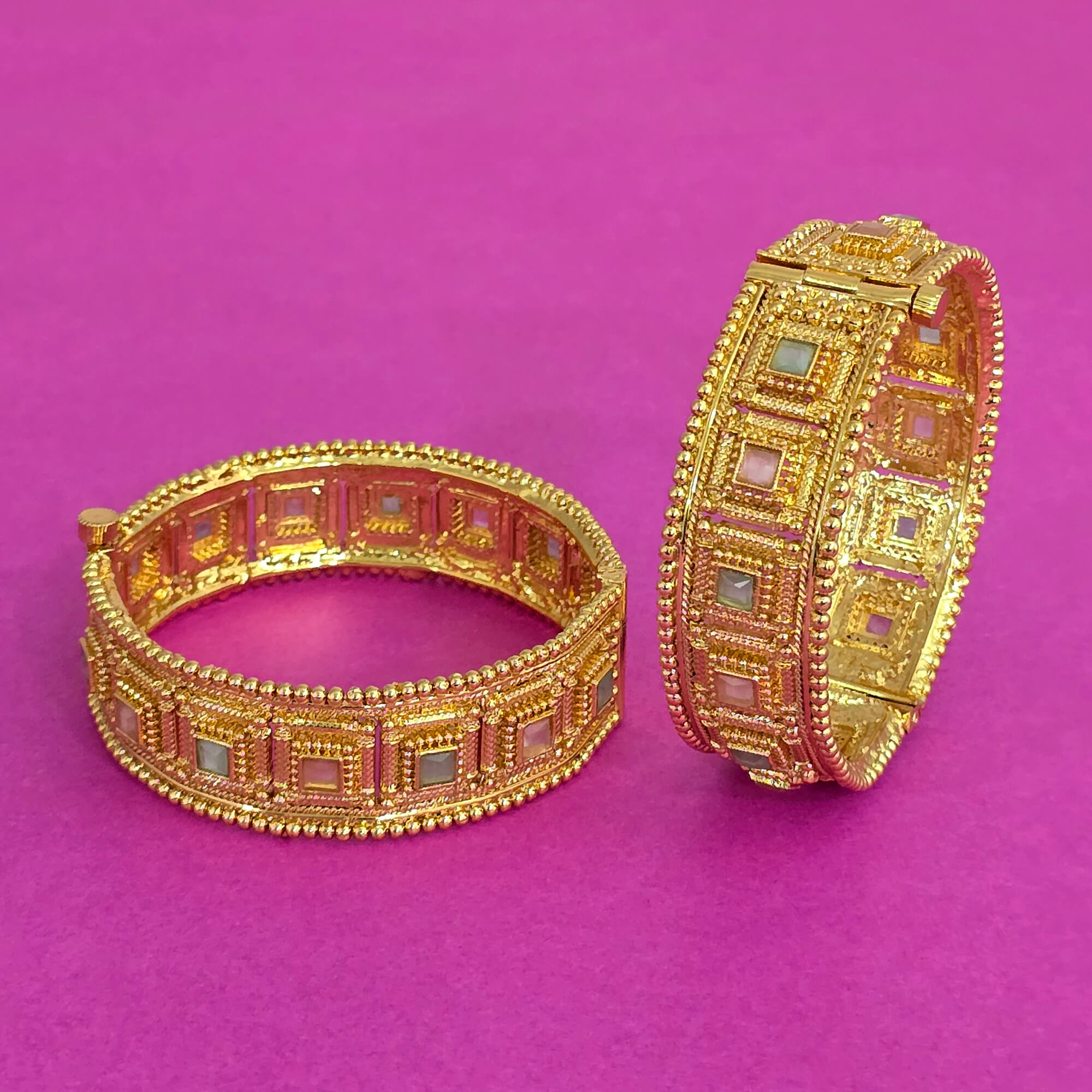 Kanhai Jewels offers an exclusive collection of finest quality crafted Fashion Jewellery in various colors. We make sure that our collection of Antique Openable Bangles With Gold Plating are beautiful, elegent & will surely galvanize you, because our products are unique, comfortable, fashion forward & very popular for the rich look. Base Metal of our product is Alloy, i.e Mixing of Copper & Brass. We pack all the products using quality packaging material to ensure safe and secure transportation.