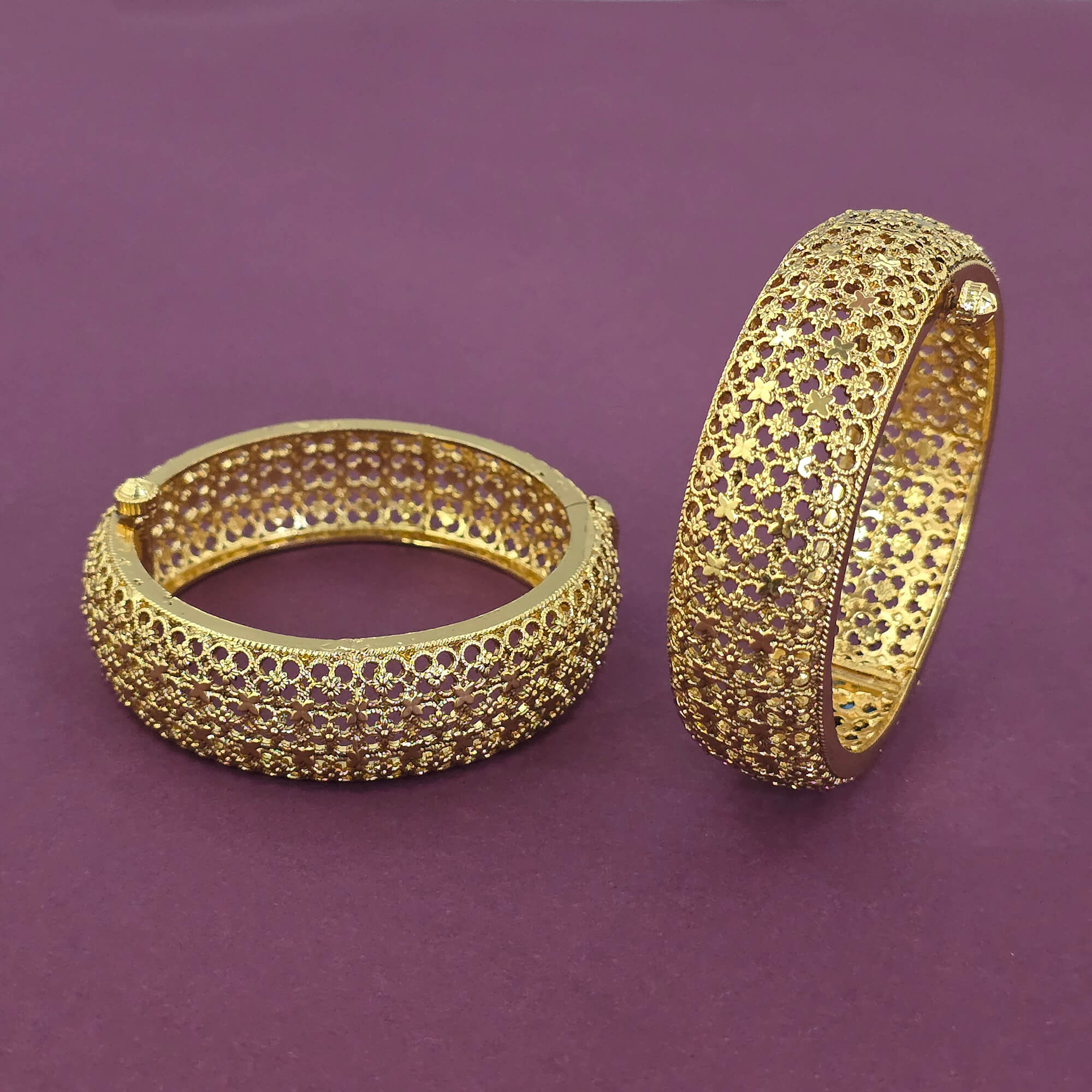 Kanhai Jewels offers an exclusive collection of finest quality crafted Fashion Jewellery in various colors. We make sure that our collection of Antique Openable Bangles With Gold Plating are beautiful, elegent & will surely galvanize you, because our products are unique, comfortable, fashion forward & very popular for the rich look. Base Metal of our product is Alloy, i.e Mixing of Copper & Brass. We pack all the products using quality packaging material to ensure safe and secure transportation.