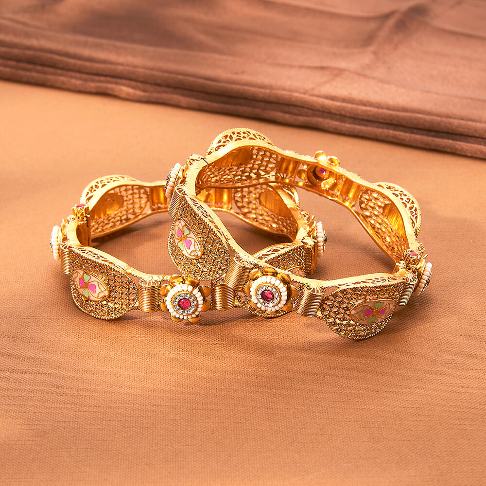 223003 Antique Openable Bangles With Matte Gold Plating