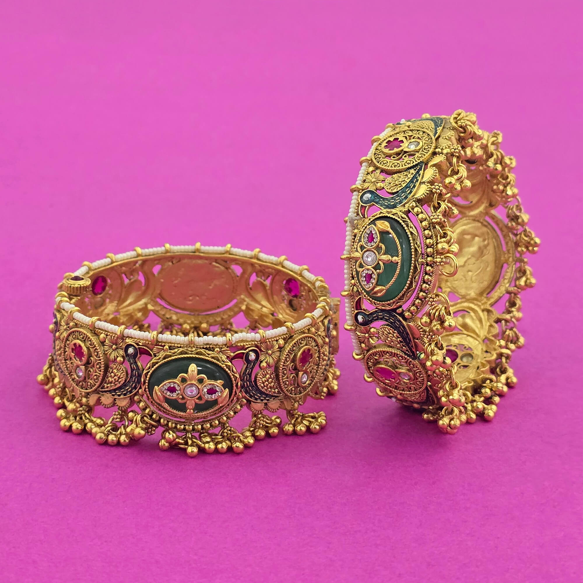 Kanhai Jewels offers an exclusive collection of finest quality crafted Fashion Jewellery in various colors. We make sure that our collection of Antique Openable Bangles With Matte Gold Plating are beautiful, elegent & will surely galvanize you, because our products are unique, comfortable, fashion forward & very popular for the rich look. Base Metal of our product is Alloy, i.e Mixing of Copper & Brass. We pack all the products using quality packaging material to ensure safe and secure transportation.