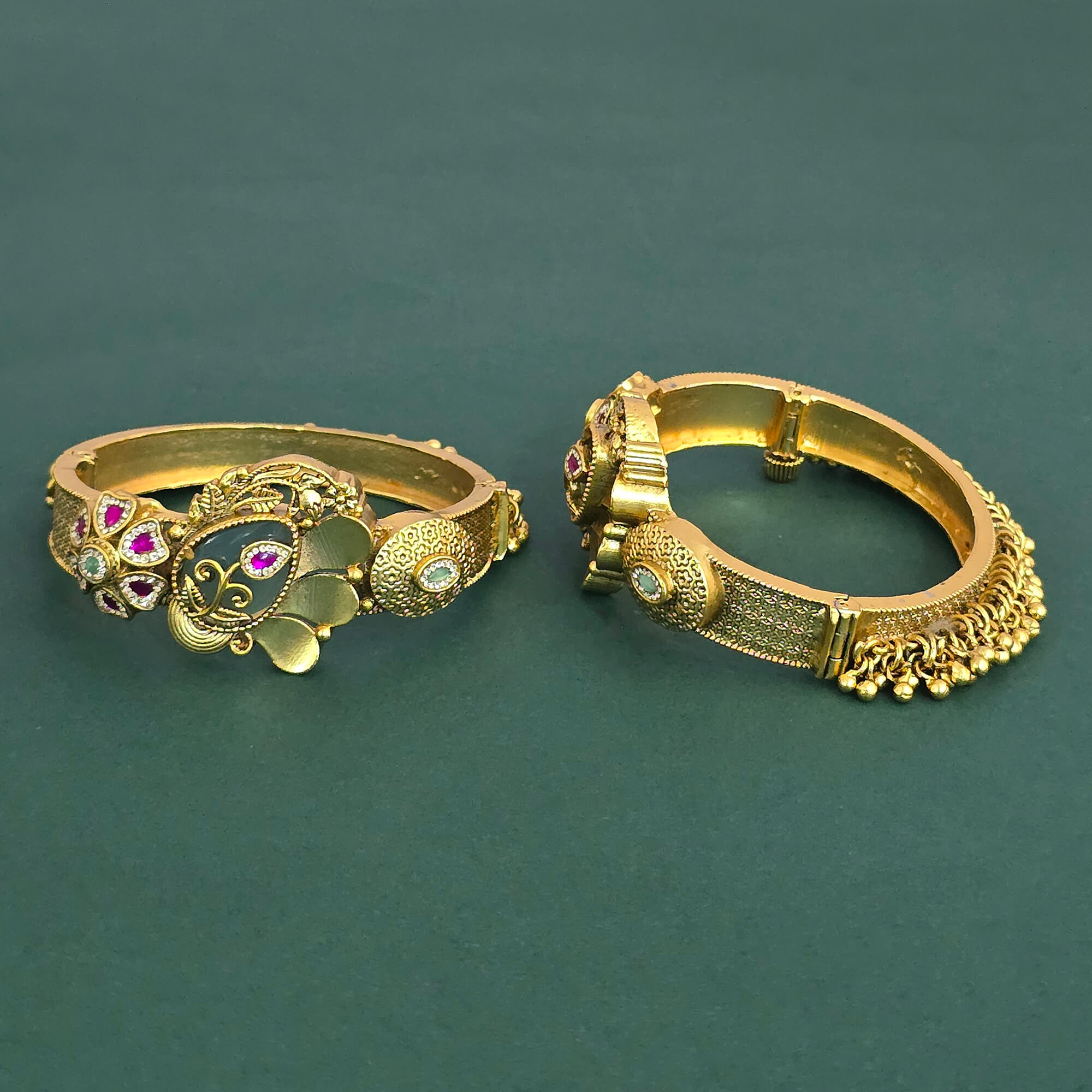 Kanhai Jewels offers an exclusive collection of finest quality crafted Fashion Jewellery in various colors. We make sure that our collection of Antique Openable Bangles With Matte Gold Plating are beautiful, elegent & will surely galvanize you, because our products are unique, comfortable, fashion forward & very popular for the rich look. Base Metal of our product is Alloy, i.e Mixing of Copper & Brass. We pack all the products using quality packaging material to ensure safe and secure transportation.