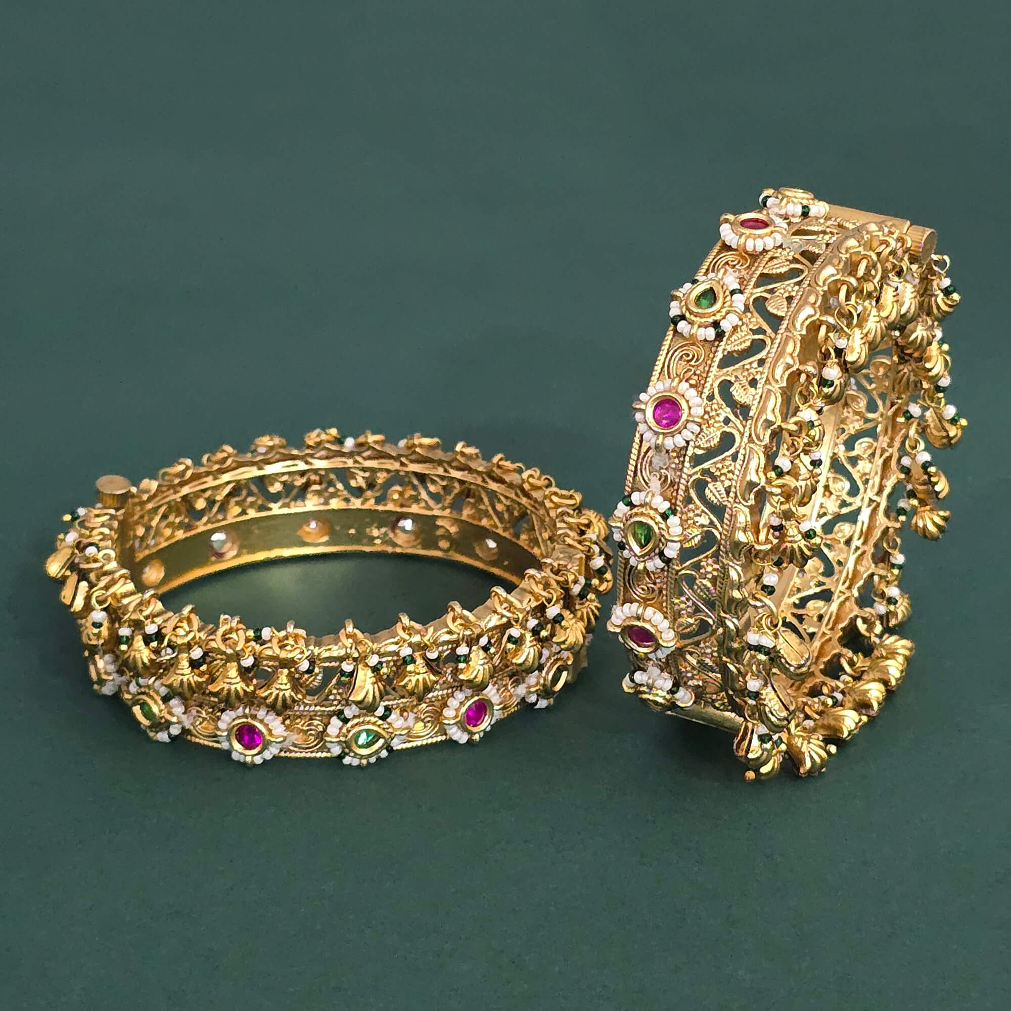 Kanhai Jewels offers an exclusive collection of finest quality crafted Fashion Jewellery in various colors. We make sure that our collection of Antique Openable Bangles With Matte Gold Plating are beautiful, elegent & will surely galvanize you, because our products are unique, comfortable, fashion forward & very popular for the rich look. Base Metal of our product is Alloy, i.e Mixing of Copper & Brass. We pack all the products using quality packaging material to ensure safe and secure transportation.