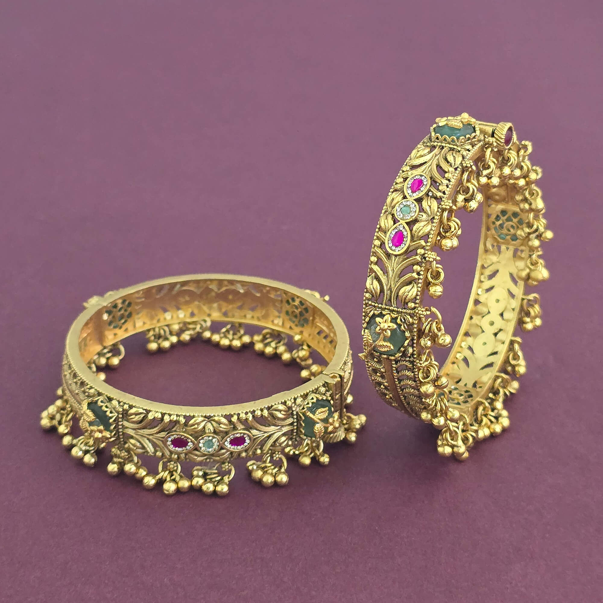 Kanhai Jewels offers an exclusive collection of finest quality crafted Fashion Jewellery in various colors. We make sure that our collection of Antique Openable Bangles With Matte Gold Plating are beautiful, elegent & will surely galvanize you, because our products are unique, comfortable, fashion forward & very popular for the rich look. Base Metal of our product is Alloy, i.e Mixing of Copper & Brass. We pack all the products using quality packaging material to ensure safe and secure transportation.