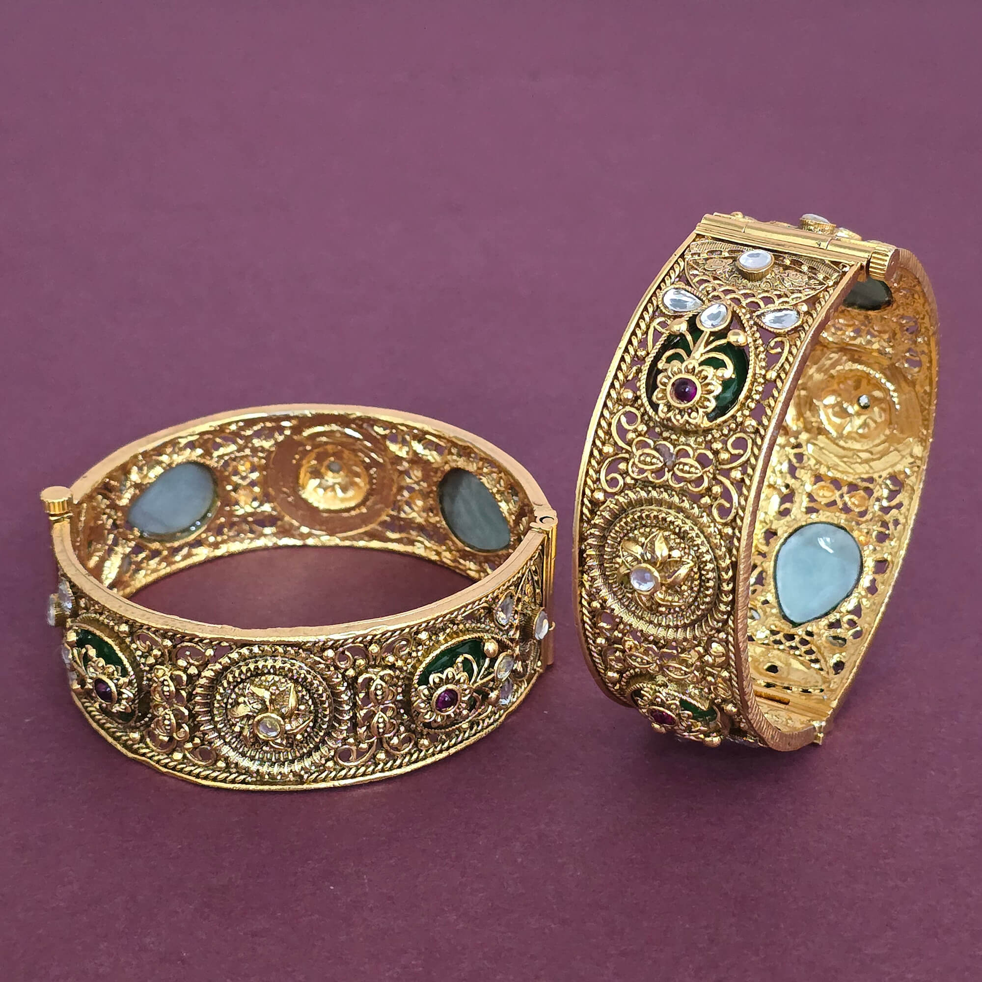 Kanhai Jewels offers an exclusive collection of finest quality crafted Fashion Jewellery in various colors. We make sure that our collection of Antique Openable Bangles With Matte Gold Plating are beautiful, elegent & will surely galvanize you, because our products are unique, comfortable, fashion forward & very popular for the rich look. Base Metal of our product is Alloy, i.e Mixing of Copper & Brass. We pack all the products using quality packaging material to ensure safe and secure transportation.