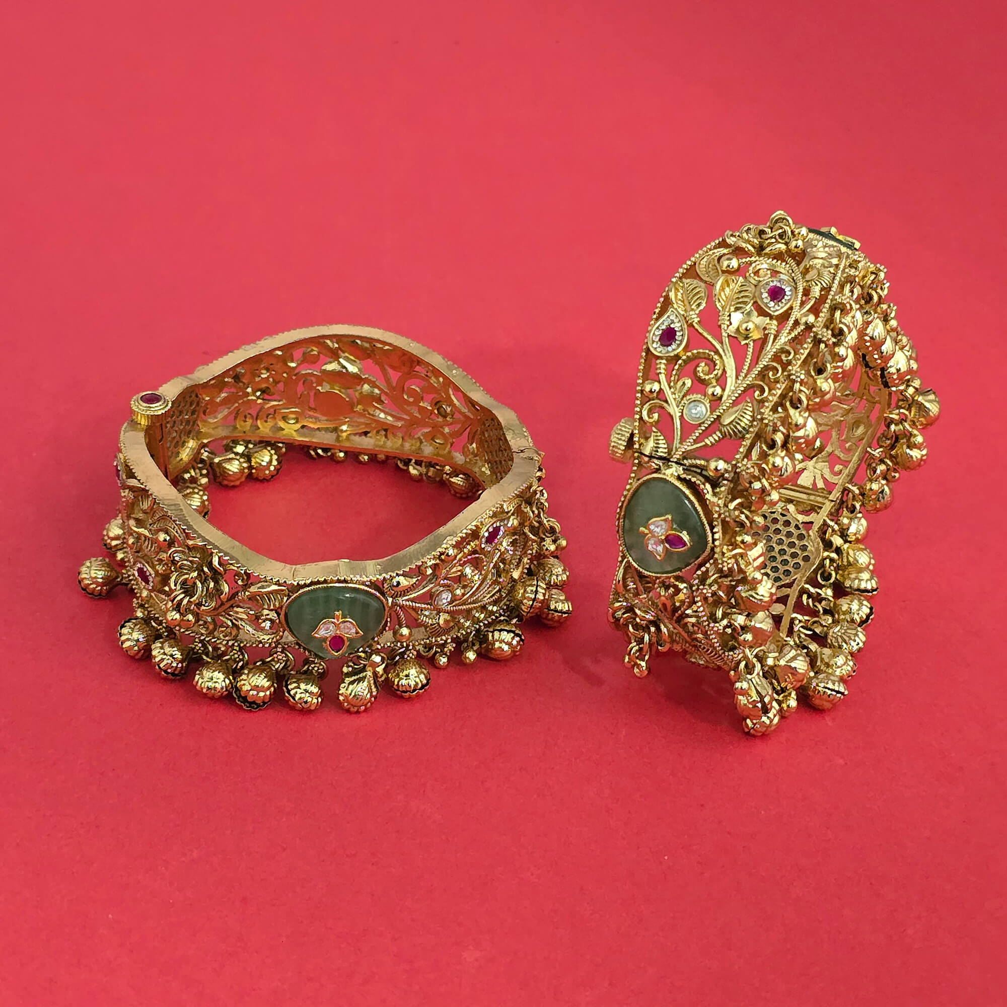 Kanhai Jewels offers an exclusive collection of finest quality crafted Fashion Jewellery in various colors. We make sure that our collection of Antique Openable Bangles With Matte Gold Plating are beautiful, elegent & will surely galvanize you, because our products are unique, comfortable, fashion forward & very popular for the rich look. Base Metal of our product is Alloy, i.e Mixing of Copper & Brass. We pack all the products using quality packaging material to ensure safe and secure transportation.