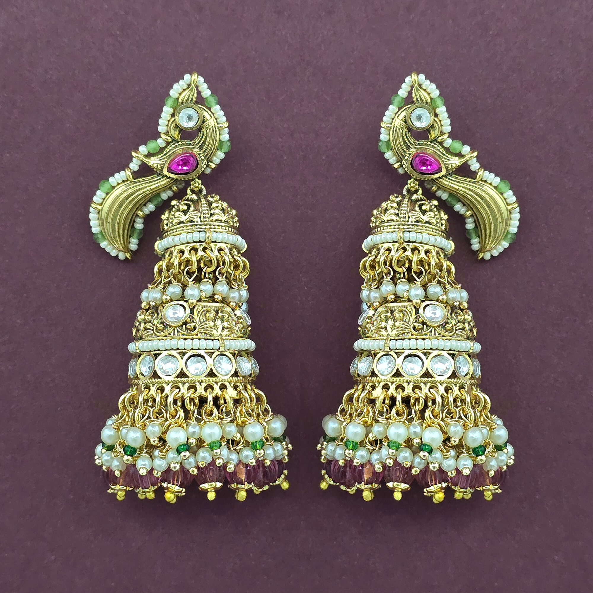 Kanhai Jewels offers an exclusive collection of finest quality crafted Fashion Jewellery in various colors. We make sure that our collection of Antique Peacock Earring With Gold Plating are beautiful, elegent & will surely galvanize you, because our products are unique, comfortable, fashion forward & very popular for the rich look. Base Metal of our product is Alloy, i.e Mixing of Copper & Brass. We pack all the products using quality packaging material to ensure safe and secure transportation.