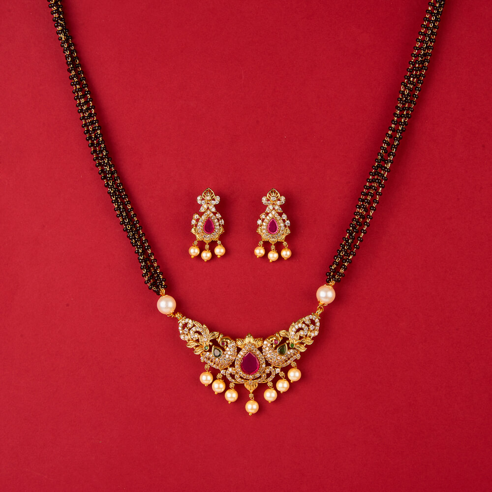 Kanhai Jewels offers an exclusive collection of finest quality crafted Fashion Jewellery in various colors. We make sure that our collection of Antique Peacock Mangalsutra With Gold Plating are beautiful, elegent & will surely galvanize you, because our products are unique, comfortable, fashion forward & very popular for the rich look. Base Metal of our product is Alloy, i.e Mixing of Copper & Brass. We pack all the products using quality packaging material to ensure safe and secure transportation.