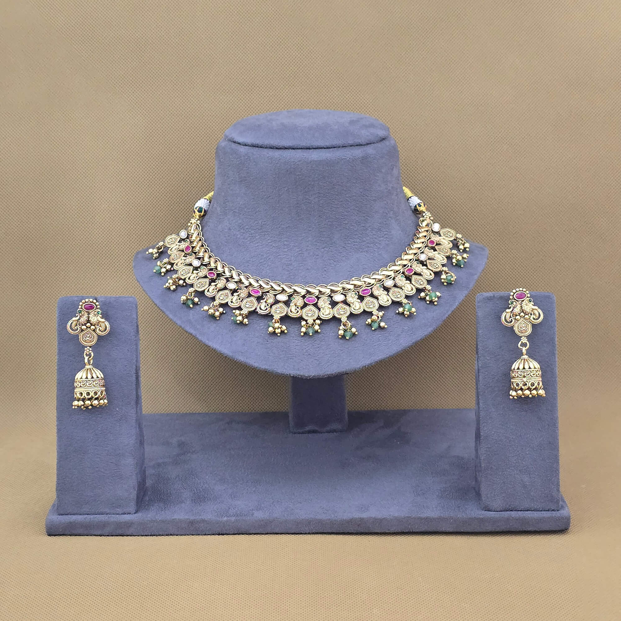 Kanhai Jewels offers an exclusive collection of finest quality crafted Fashion Jewellery in various colors. We make sure that our collection of Antique Peacock Necklace Set With Gold Plating are beautiful, elegent & will surely galvanize you, because our products are unique, comfortable, fashion forward & very popular for the rich look. Base Metal of our product is Alloy, i.e Mixing of Copper & Brass. We pack all the products using quality packaging material to ensure safe and secure transportation.